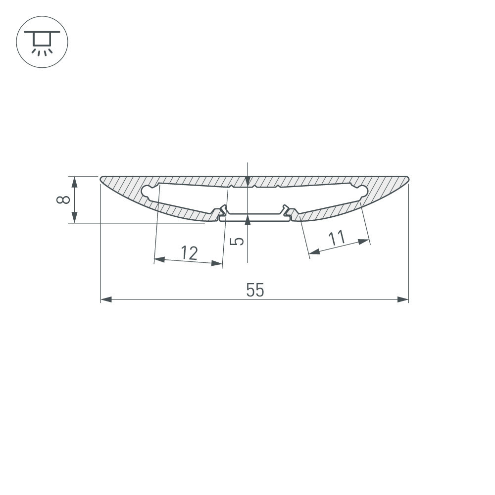 Алюминиевый анодированный профиль для светодиодных лент и линеек (2 по 10 мм). Отдельно поставляются матовые и прозрачные экраны, заглушки.Размер 2000х54.9х8 ммЦена за 1 метр
