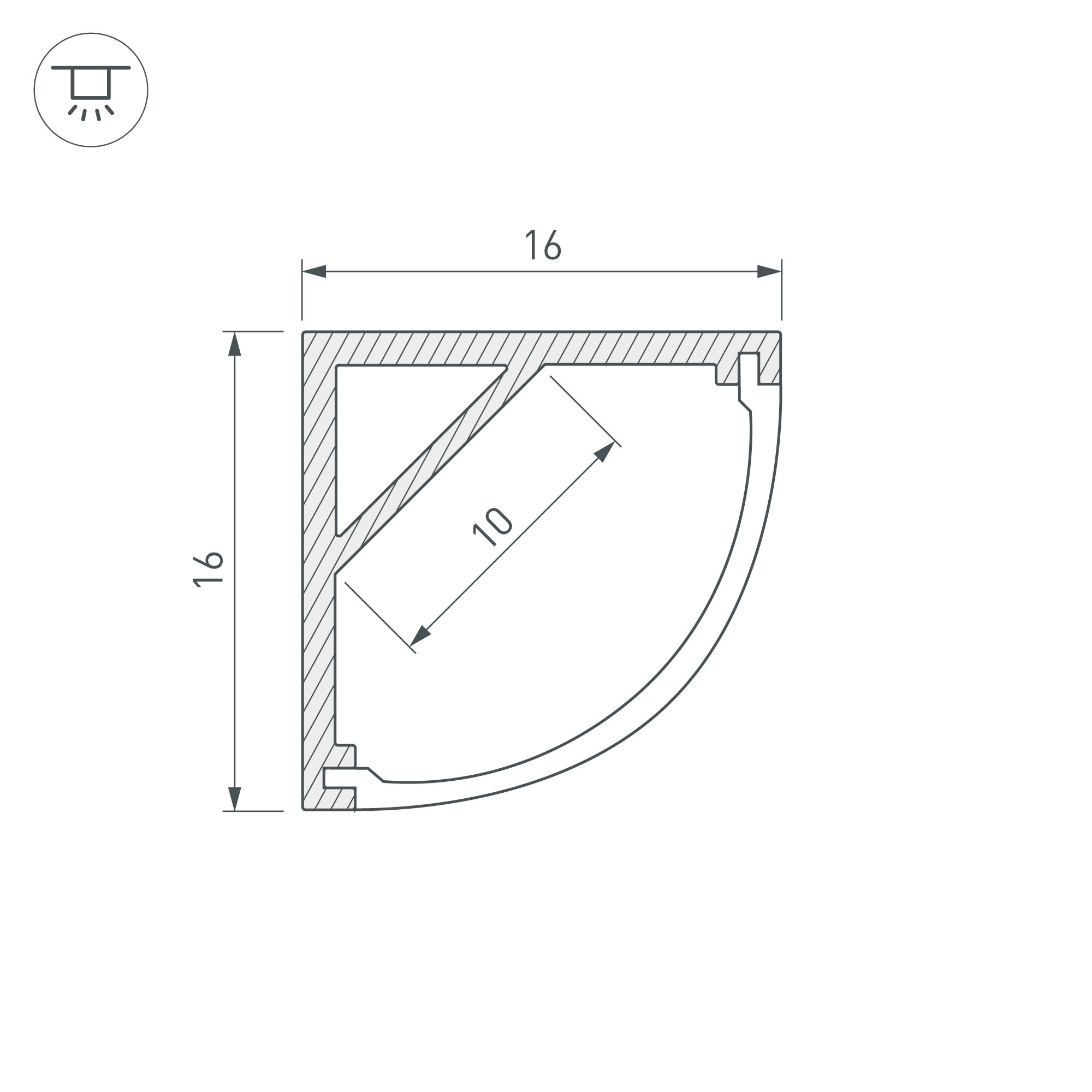 Угловой профиль 16х16 мм, для лент шириной до 10мм. Анодированный алюминий. Подходят экраны ARH-KANT-H16-2000 Round, Square, пластиковые заглушки, держатель (отдельно). Размеры 2000х16х16 мм. Цена за 1м.