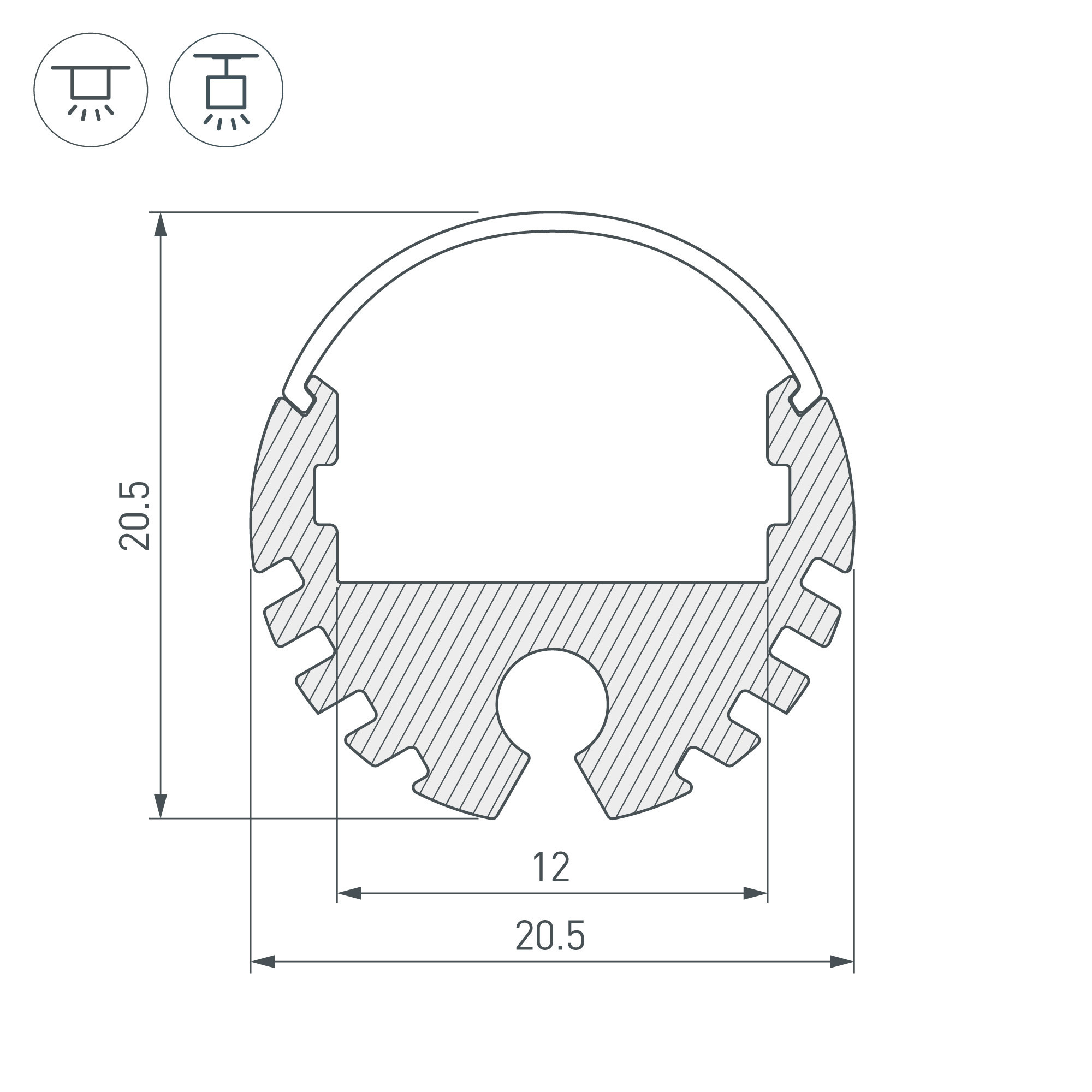 Круглый профиль для лент шириной до 12мм. Анодированный алюминий. Подходит Экран ROUND-D20, поворотный держатель, заглушки (отдельно). Может подвешиваться на Подвес для ARH-LINE-1726, LINE-1716. Размеры 2000х20,5 (диаметр). Цена за 1м.