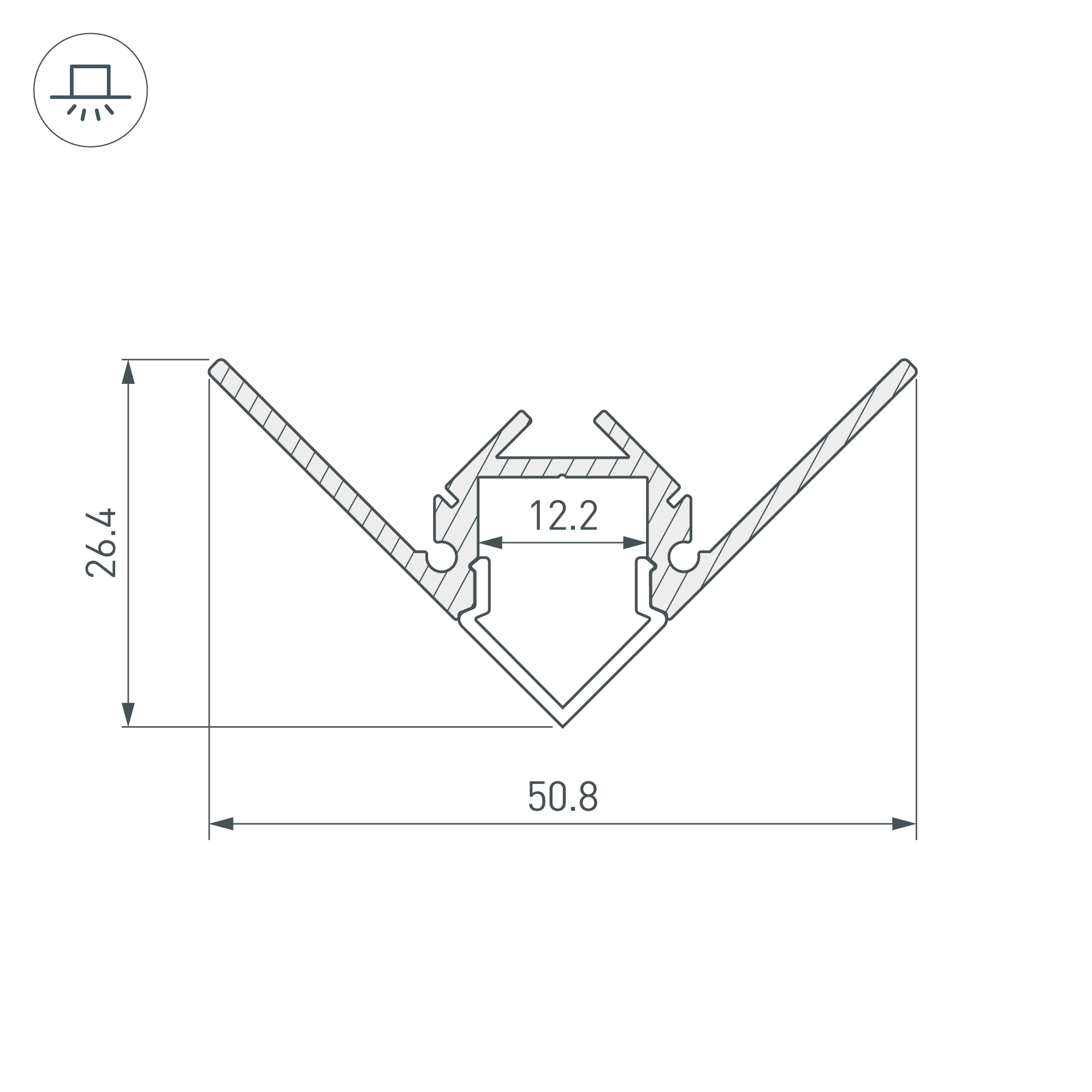 Профиль угловой декоративный под строительную отделку. Назначение: декоративная контурная подсветка внешних углов стен и конструкций. Для лент шириной до 12 мм и мощностью до 25 Вт на метр. Способ монтажа – накладной. Цена за метр.
