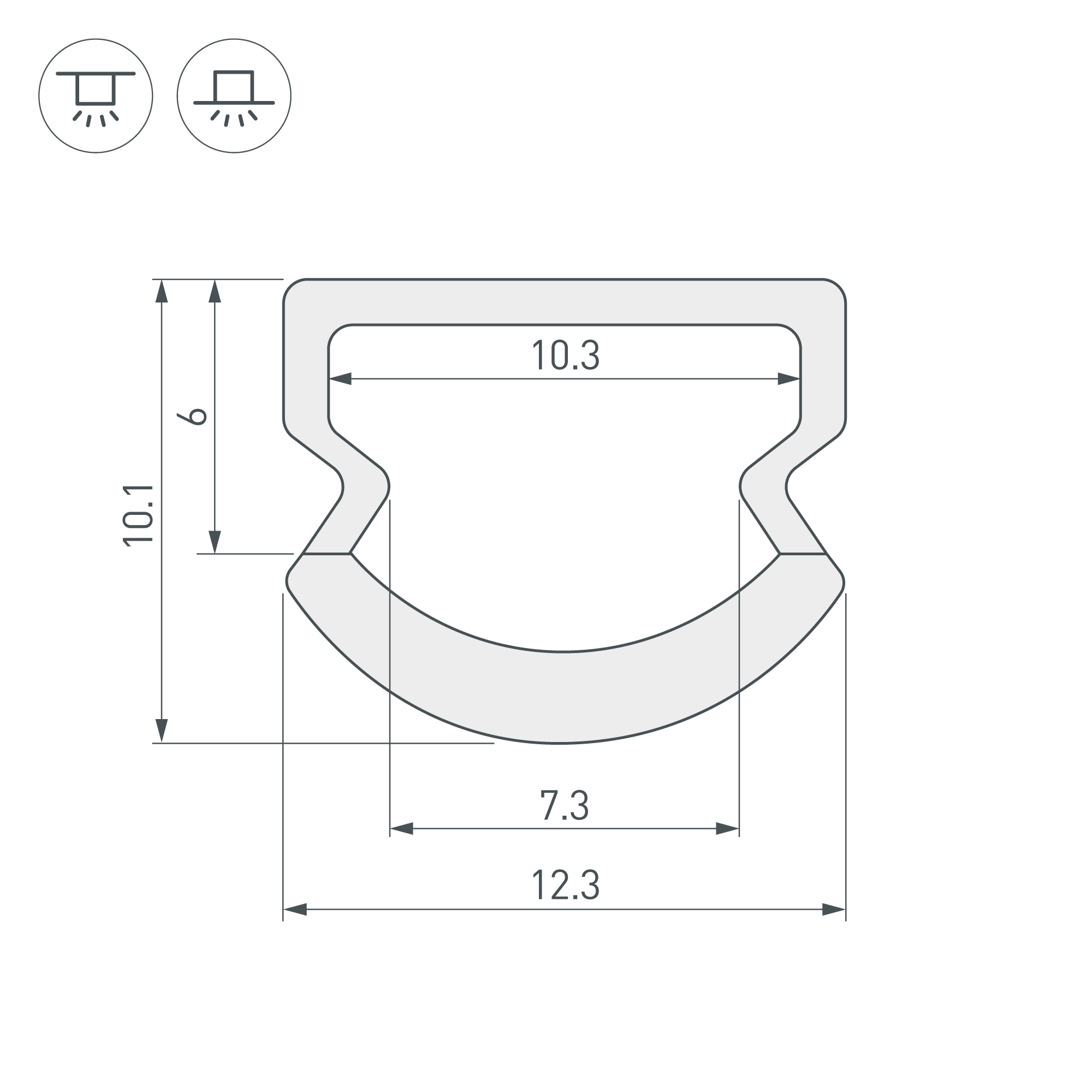 Цельнолитой пластиковый профиль со встроенным полукруглым матовым экраном. Материал - PC. Для лент и линеек шириной до 8 мм. Размер 2000*12.3*10.1 мм. Класс пылевлагозащиты – IP65 (при соблюдении технологии герметизации). Для лент и линеек максимальной мощностью 9,2 ВТ/м. Цена за 1 м.
