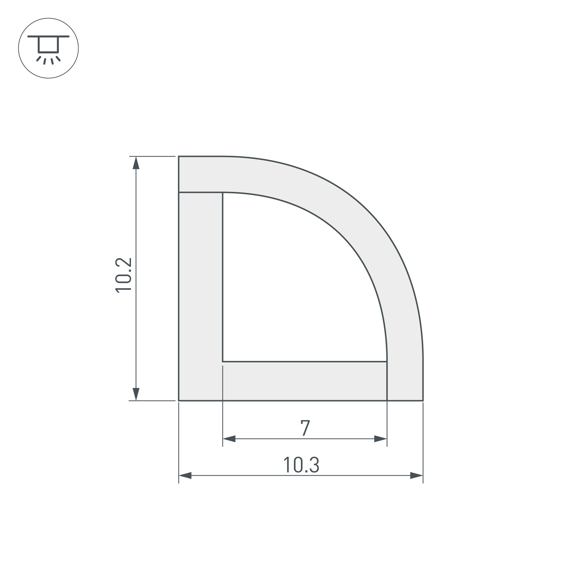 Цельнолитой пластиковый профиль со встроенным матовым экраном. Материал - PC. Для лент и линеек шириной до 6 мм (по стороне) или до 8 мм (по диагонали). Размер 2000*10.2*10.3 мм Класс пылевлагозащиты – IP65 (при соблюдении технологии герметизации). Для лент и линеек максимальной мощностью 9,2 ВТ/м. Цена за 1м.