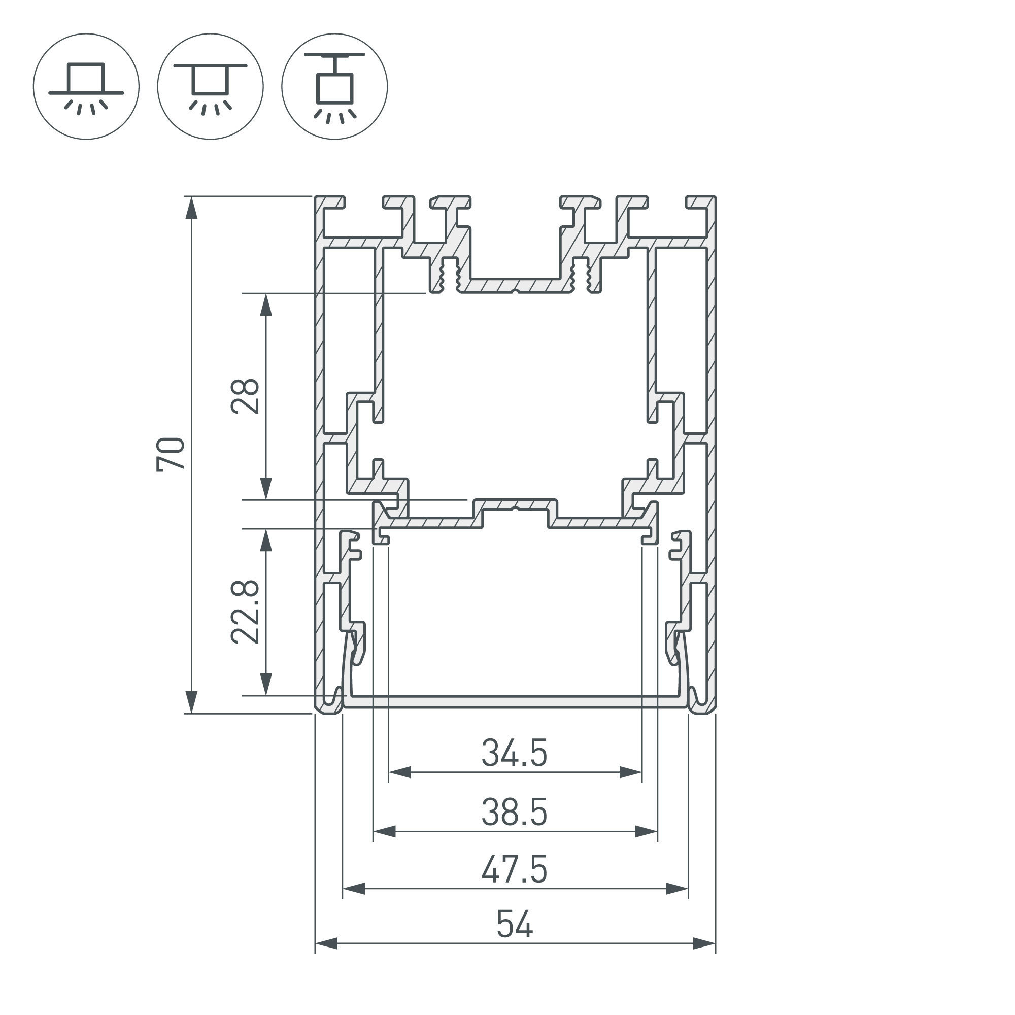 Накладной алюминиевый анодированный профиль LINE серии S2.0, габариты 54х70х2500 мм. Цвет - серебристый. В комплекте профиль, основание для ленты, PC матовый экран, фиксаторы основания 4шт, винты. Отсек для БП 35х25мм (±1 мм). Цена за 1 комплект. Заглушки, крепления и подвесы поставляются отдельно. Светопропускание экрана 85%.