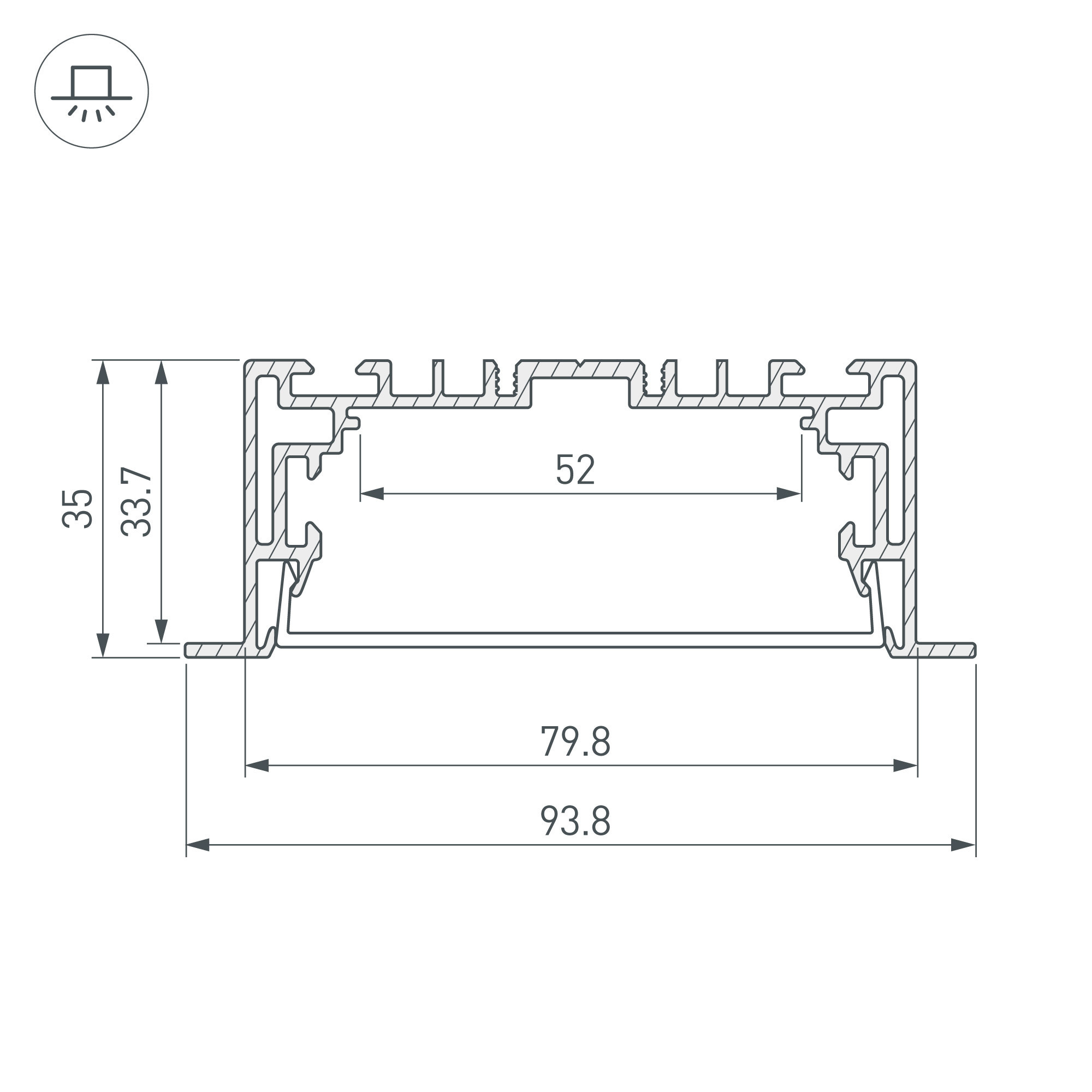 Встраиваемый алюминиевый анодированный профиль LINIA серии S2.0 с фланцем F=10мм, габариты 2500х94х35мм. Цвет - серебристый. Рекомендуемый паз для установки: ширина 85 мм, глубина 75мм (±1 мм). В комплекте профиль, PC матовый экран. Крепления и заглушки поставляются отдельно. Цена за 1 комплект. Светопропускание экрана 85%.