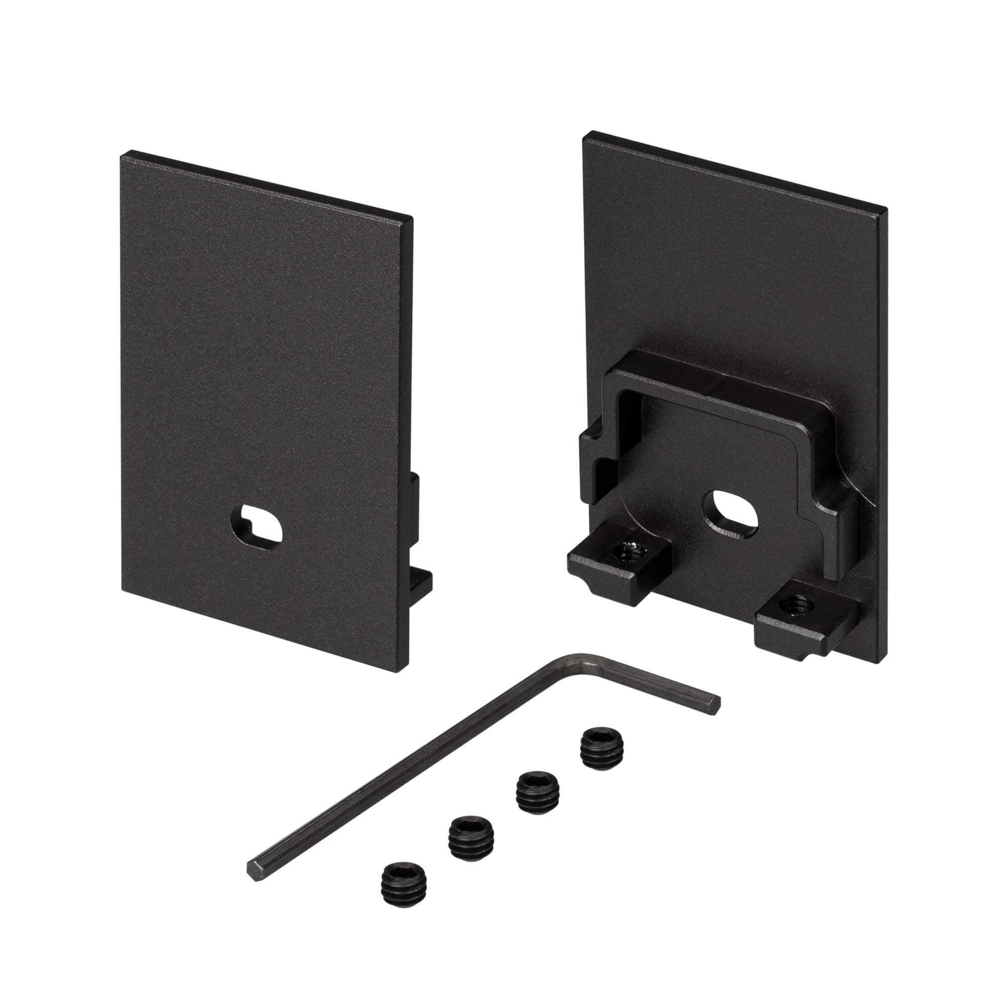 Пара заглушек черного цвета (с отверстием) для профиля SL-COMFORT-3551 BLACK. В комплекте 2 заглушки, 4 винта, шестигранный ключ. Цена за комплект.