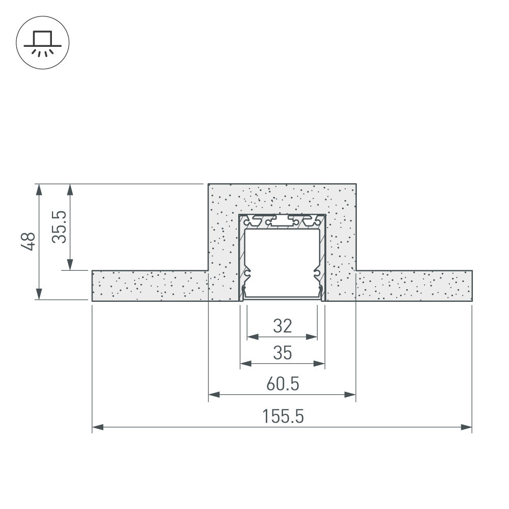Гипсокартонный модуль серии LINE со встроенным алюминиевым профилем SL-LINE-3535. Внешний вид - прямая линия света шириной 32 мм в плоскости. Размеры модуля: ширина -155 мм, высота - 44.5 мм, длина - 2000 мм. Ширина площадки для светодиодной ленты: 31 мм. Толщина гипсокартона: 12,5 мм. Матовый экран в комплекте. Поставляется не зашпаклеванным. Цена за 1 м.