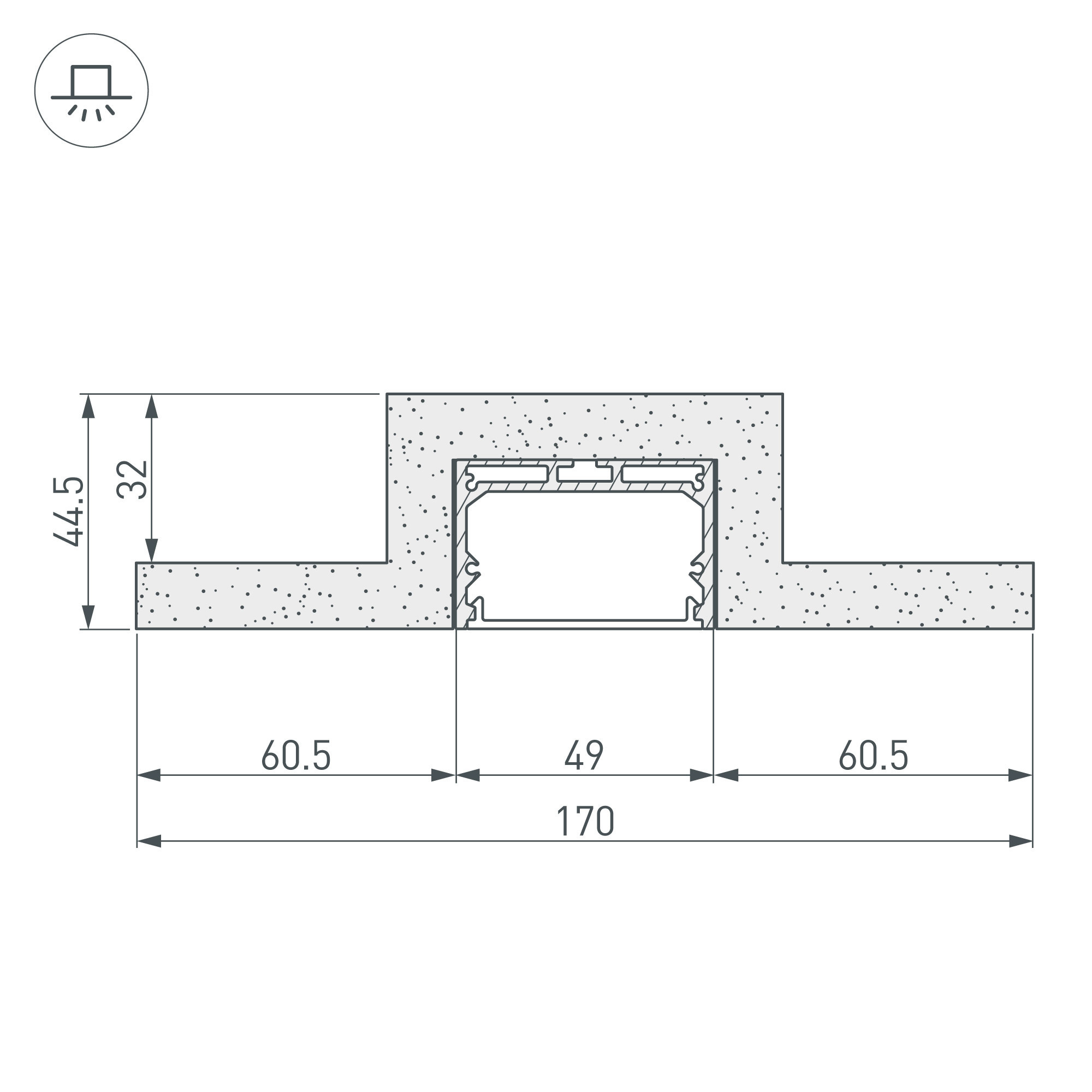 Гипсокартонный модуль серии LINE со встроенным алюминиевым профилем SL-LINE-4932. Внешний вид - прямая линия света шириной 45 мм в плоскости. Размеры модуля: ширина -170 мм, высота – 44.5 мм, длина - 2000 мм. Ширина площадки для светодиодной ленты: 38 мм. Толщина гипсокартона: 12,5 мм. Матовый экран в комплекте. Поставляется не зашпаклеванным. Цена за 1 м.