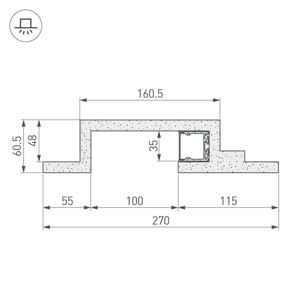Гипсокартонный модуль серии BAY со встроенным алюминиевым профилем SL-LINE-3535. Внешний вид - прямоугольная ниша с боковой линией света шириной 32 мм. Размеры модуля: ширина -270 мм, высота - 60 мм, длина - 2000 мм. Толщина гипсокартона: 12,5 мм. Матовый экран в комплекте. Поставляется не зашпаклеванным. Цена за 1 м.