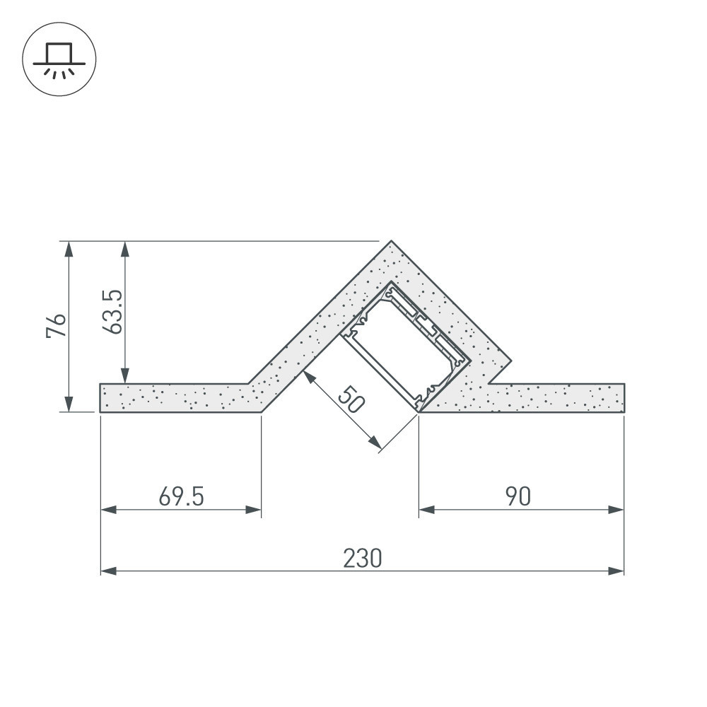 Гипсокартонный модуль серии SLOT со встроенным алюминиевым профилем SL-LINE-4932. Внешний вид – прямая линия света шириной 45 см в слоте с угловым наклоном. Размеры модуля: ширина -230 мм, высота - 76 мм, длина - 2000 мм. Ширина площадки под ленту - 38 мм. Толщина гипсокартона: 12,5 мм. Матовый экран в комплекте. Поставляется не зашпаклеванным. Цена за 1 м.