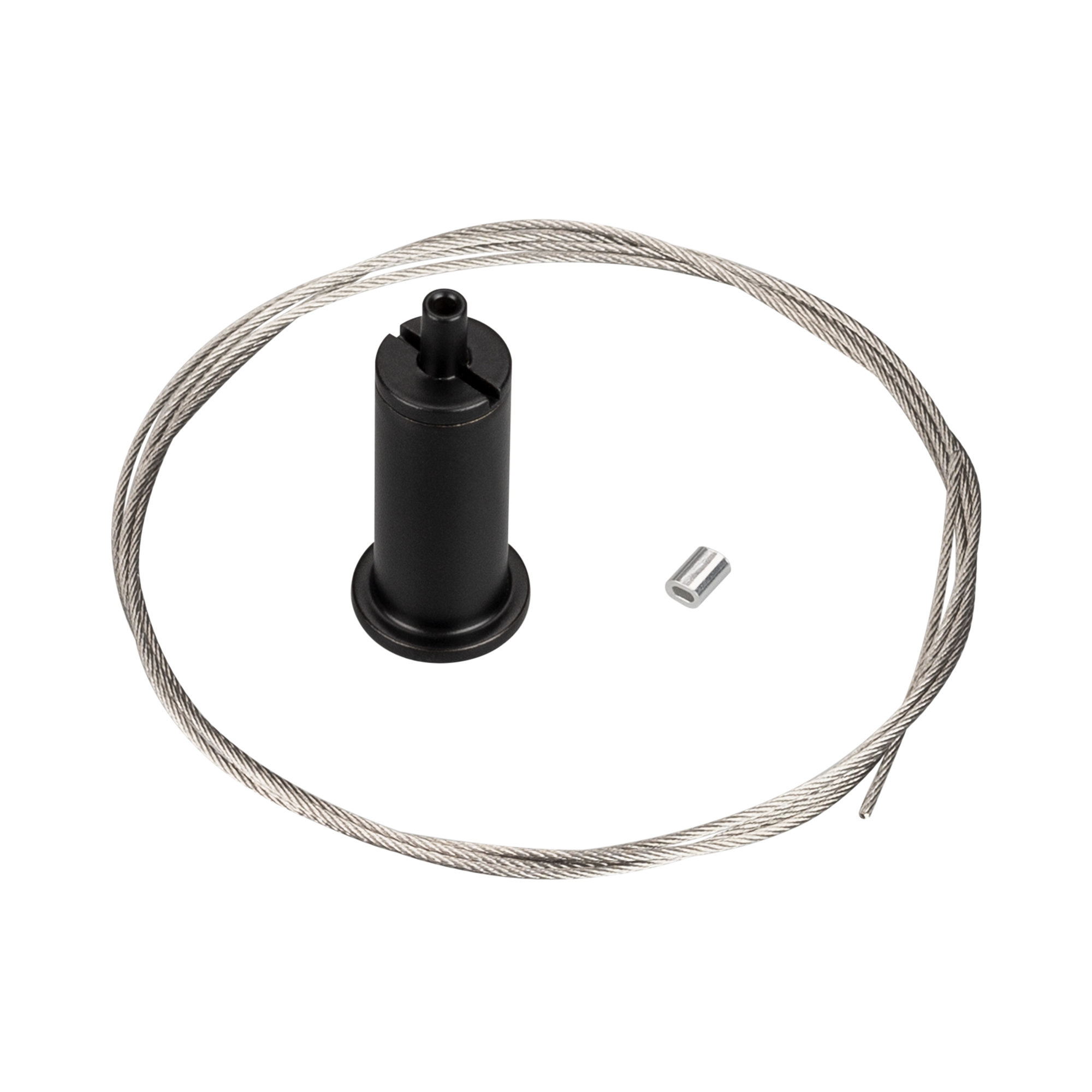 Крепежный набор черного цвета, применяется для подвесного монтажа, для крепления к аксессуарам для подвесного монтажа (проушина арт. 032861 и т.д.). В комплекте тросик 1 м., потолочное крепление (кронштейн). Шуруп в комплект не входит, т.к. он подбирается в соответствии с поверхностью, на которую монтируется крепление.