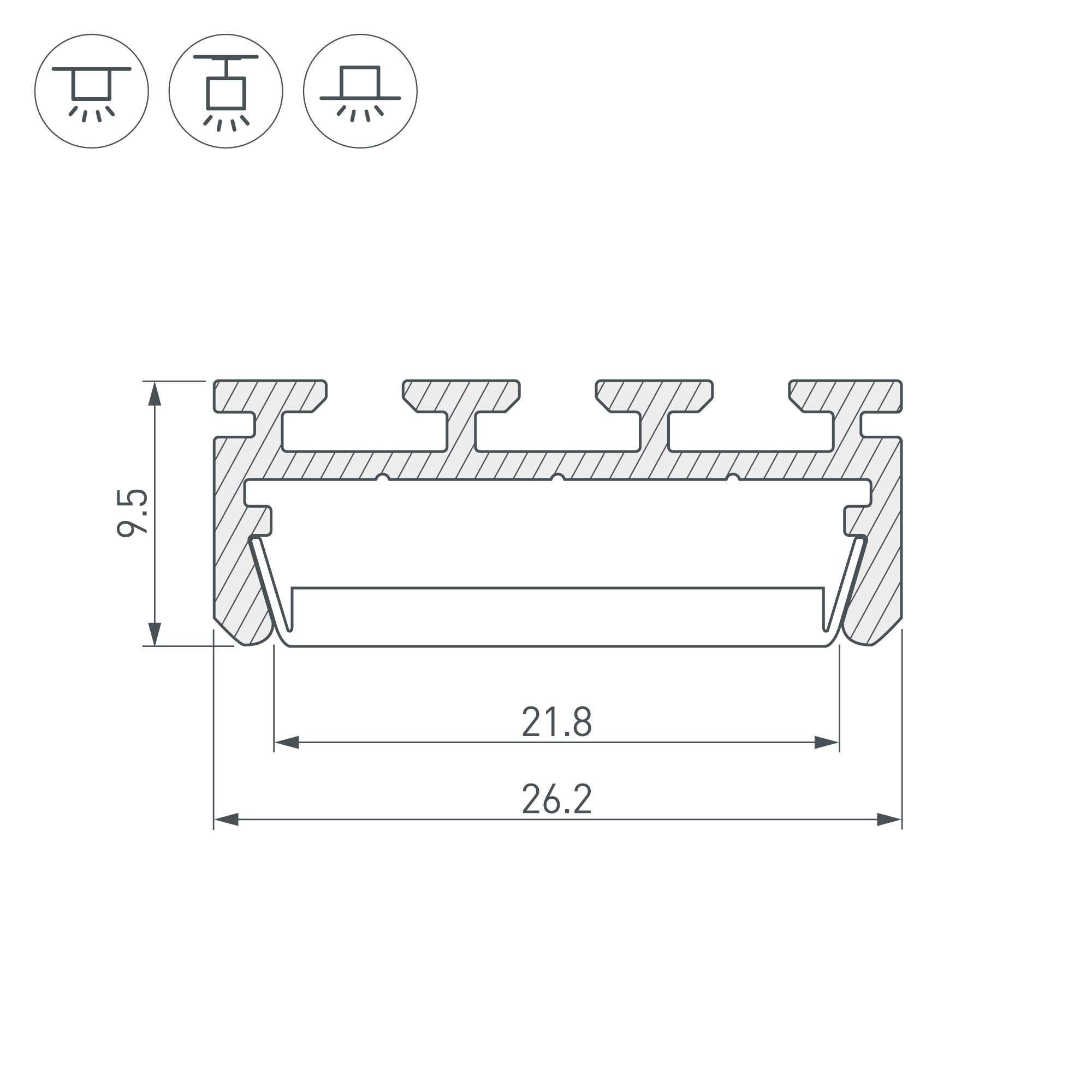 Алюминиевый анодированный профиль для создания световых полос. Крепление к гипсокартону пружинами PLS-GIP или установка в профиль-держатель TEK-PLS на клипсы. Для лент шириной до 21 мм. При использовании с объемными экранами G-K, G-L необходимы дополняющие заглушки. Размер 26х10мм. Цена за 1 м.