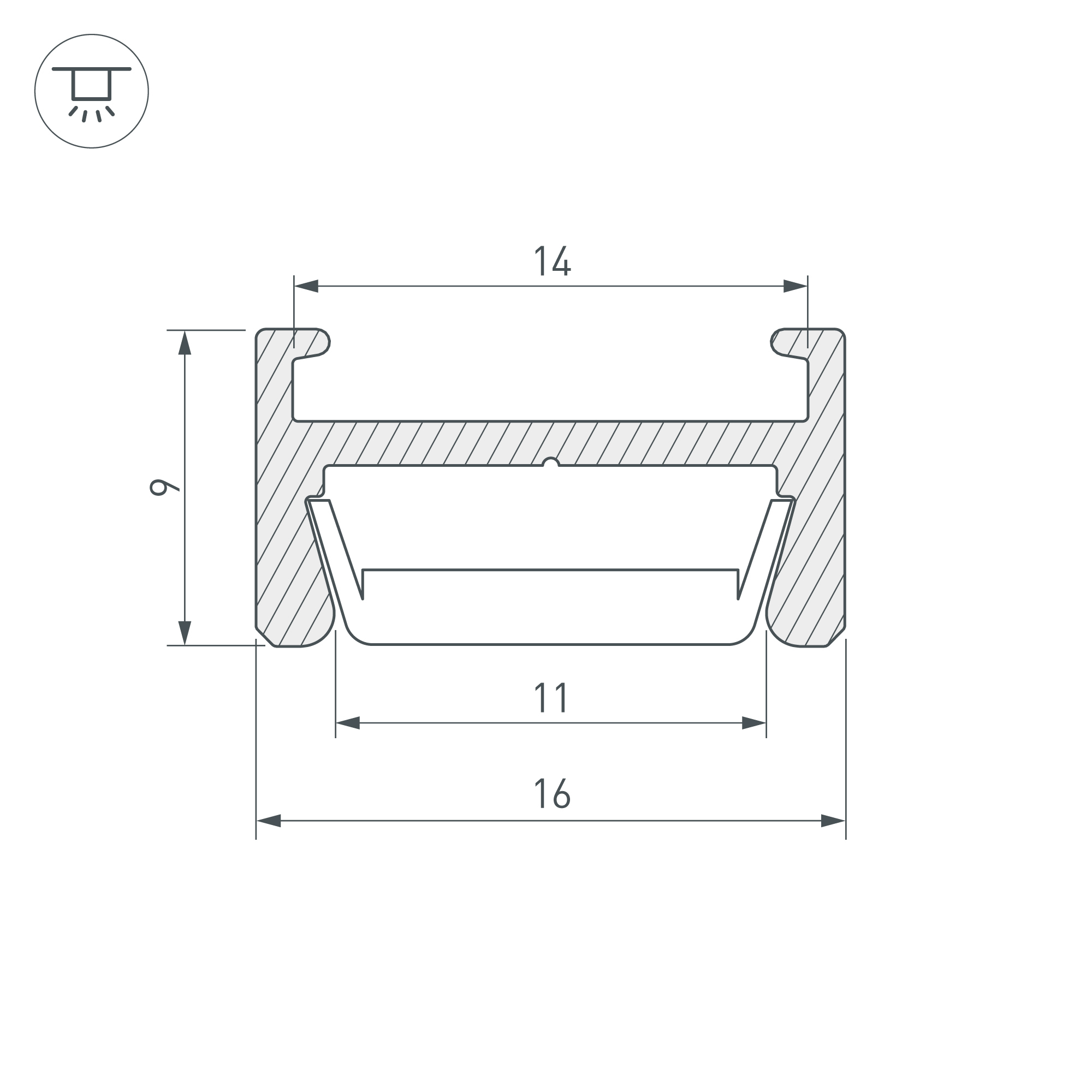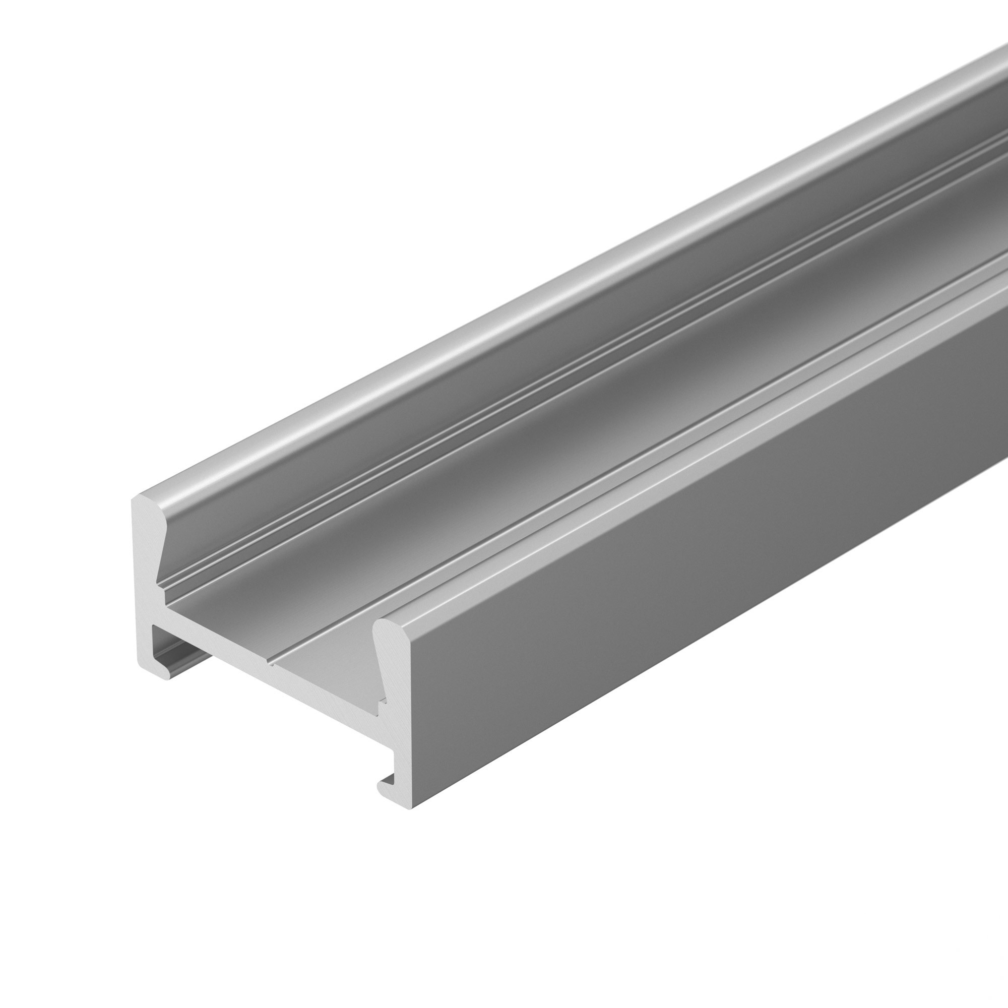 Алюминиевый анодированный узкий профиль со скрытым монтажом на скобы. Для светодиодной ленты, линейки. Может использоваться с матовым или прозрачным экраном (рассеивателем) и заглушками. Размер 2000х16х8.7мм.