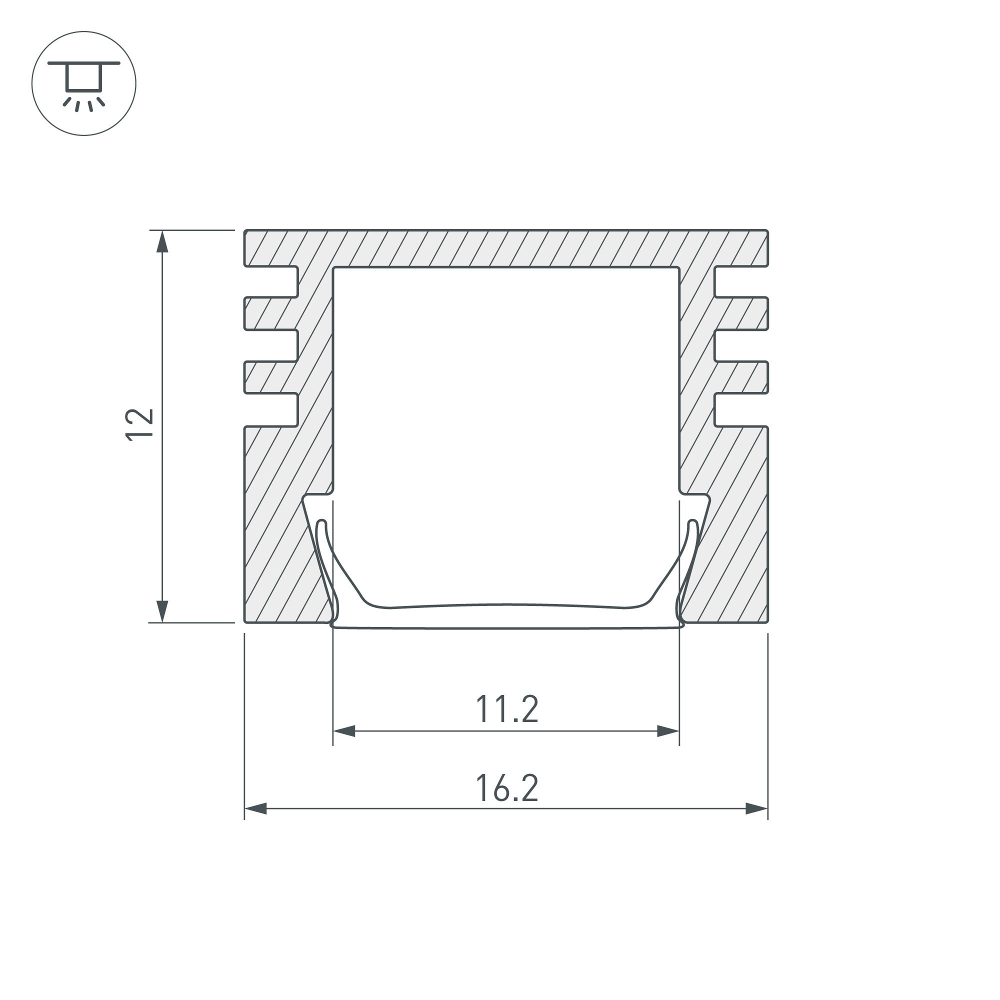 Алюминиевый анодированный прямоугольный профиль, без экрана, для светодиодной ленты, линейки. Может использоваться с матовым или прозрачным экраном (рассеивателем) держателями и заглушками. Размер 2000х16х12мм. Для светодиодных лент шириной до 10мм