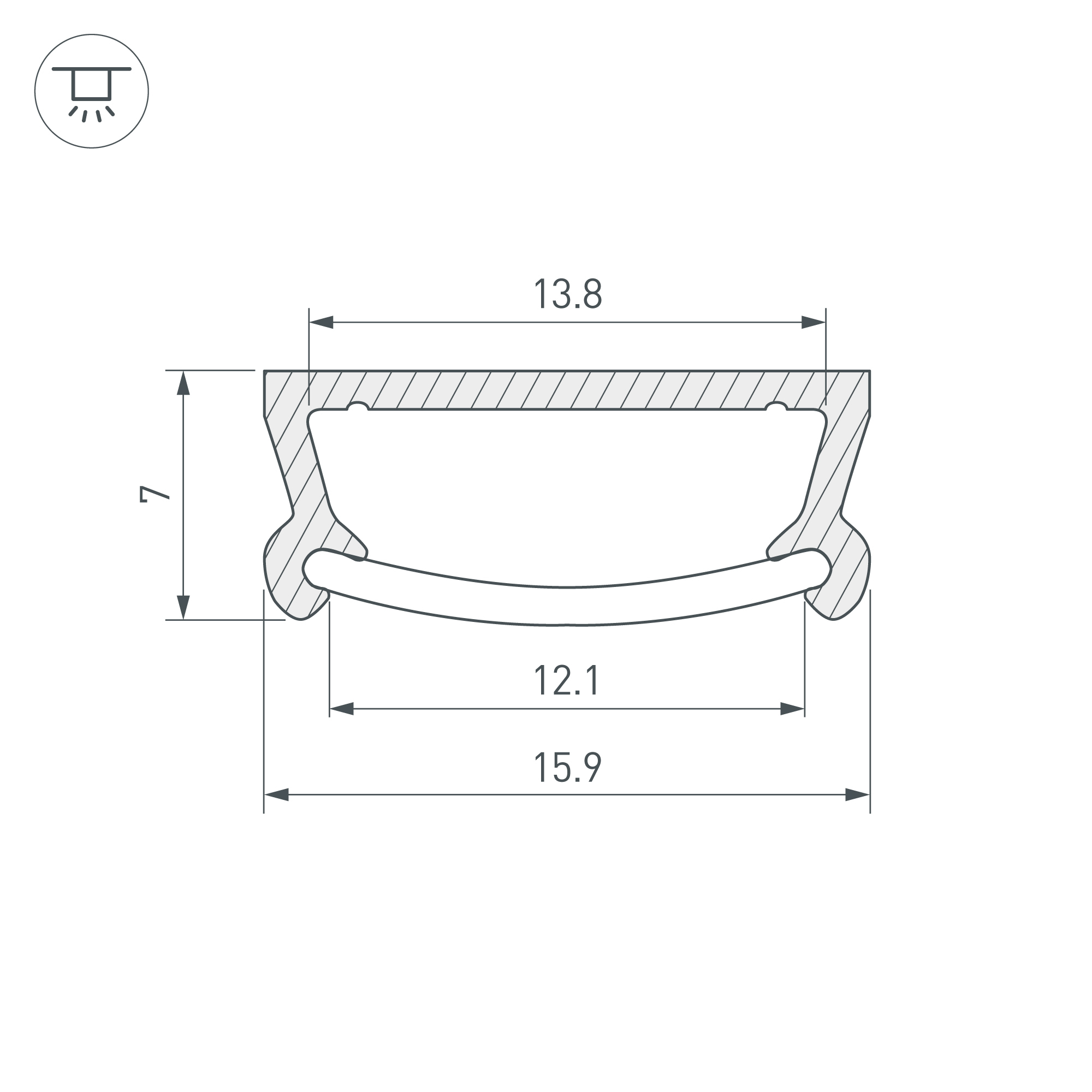 Неанодированный алюминиевый профиль, для светодиодной ленты, линейки. Размер 2000x16x7мм.