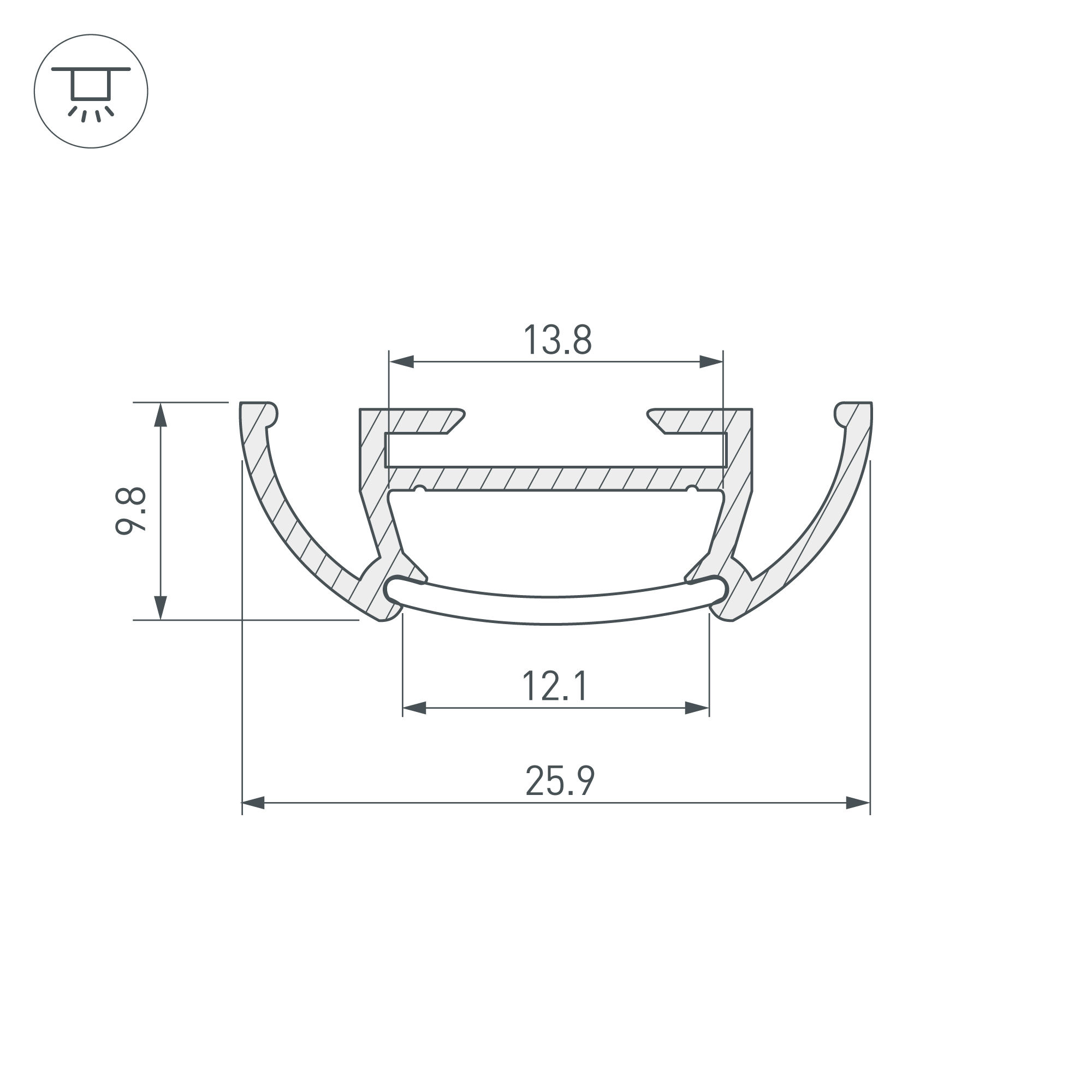 Алюминиевый анодированный профиль, для светодиодной ленты, линейки. Может использоваться с матовым или прозрачным экраном (рассеивателем) и заглушками. Размер 2000x25,9x9,8мм
