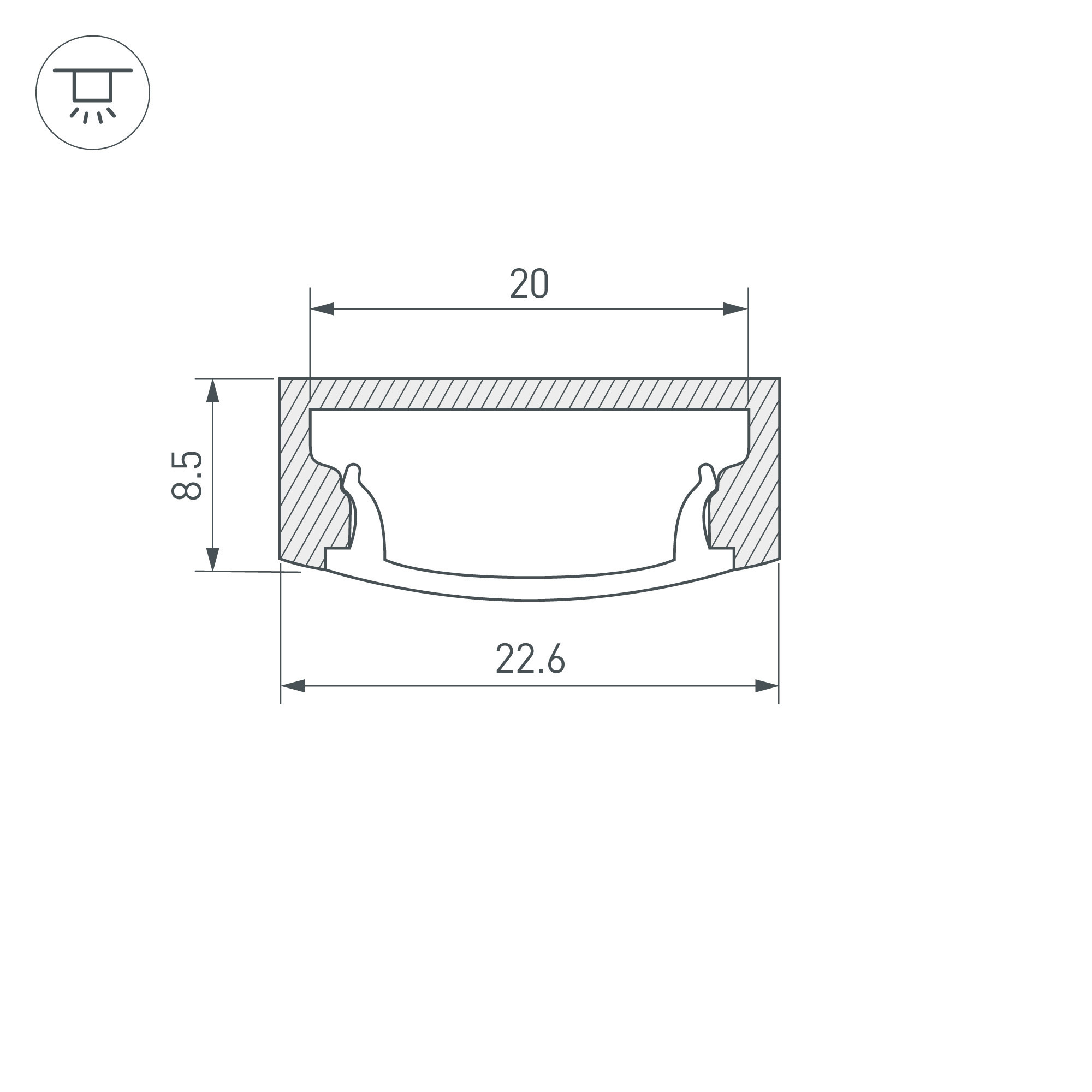 Анодированный накладной профиль 2м в комплекте с матовым экраном.Для лент и линеек шириной до 18мм, мощность 8-10 Вт/м.Высота 8.5мм (9.9мм с экраном) х ширина 22.6 мм. Цена за комплект 2м.