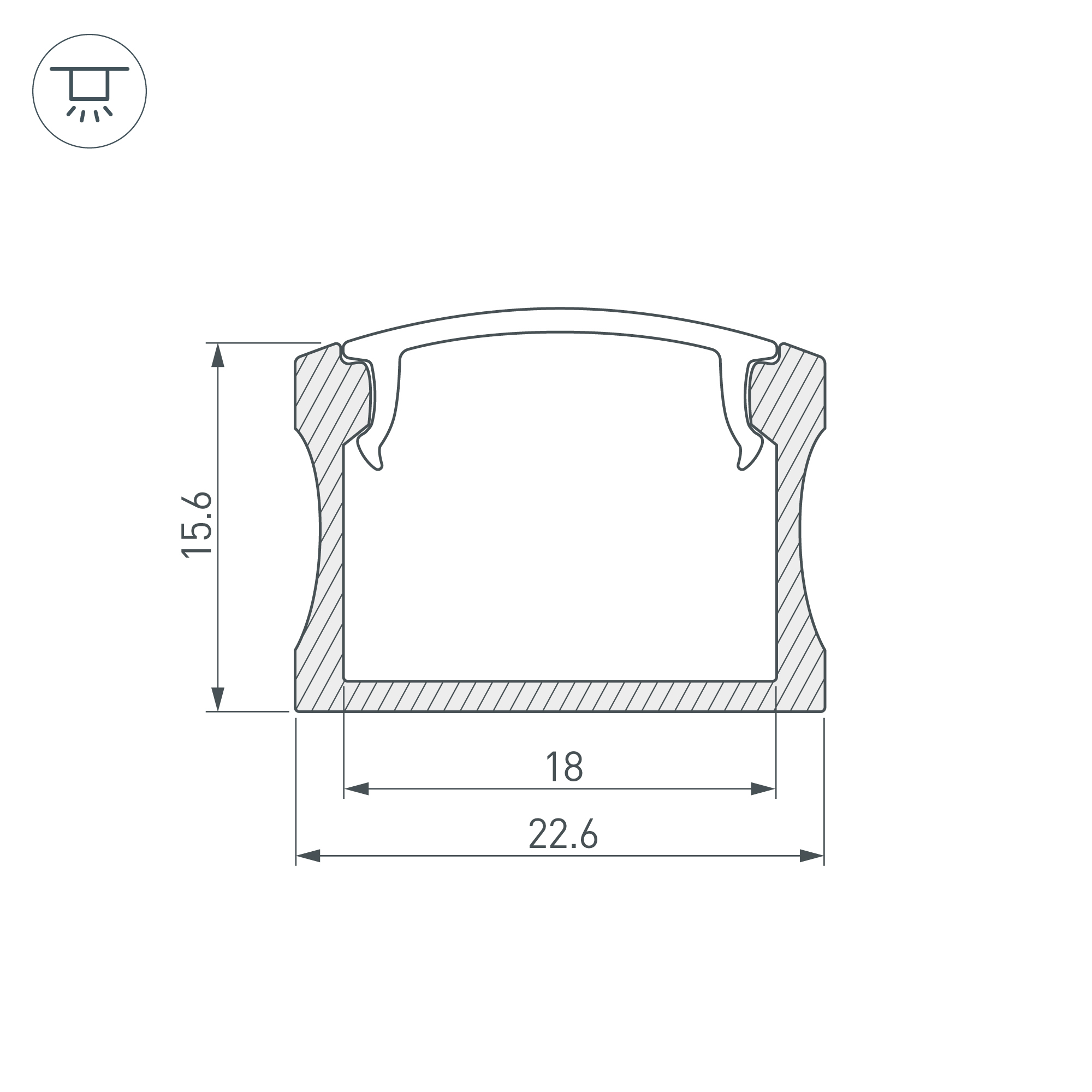 Анодированный профиль 2м в комплекте с матовым экраном.Для лент и линеек шириной до 17мм, мощностью до 22 Вт/м.Высота 15.6 мм х ширина 22.6 мм. Цена за к-т 2м.
