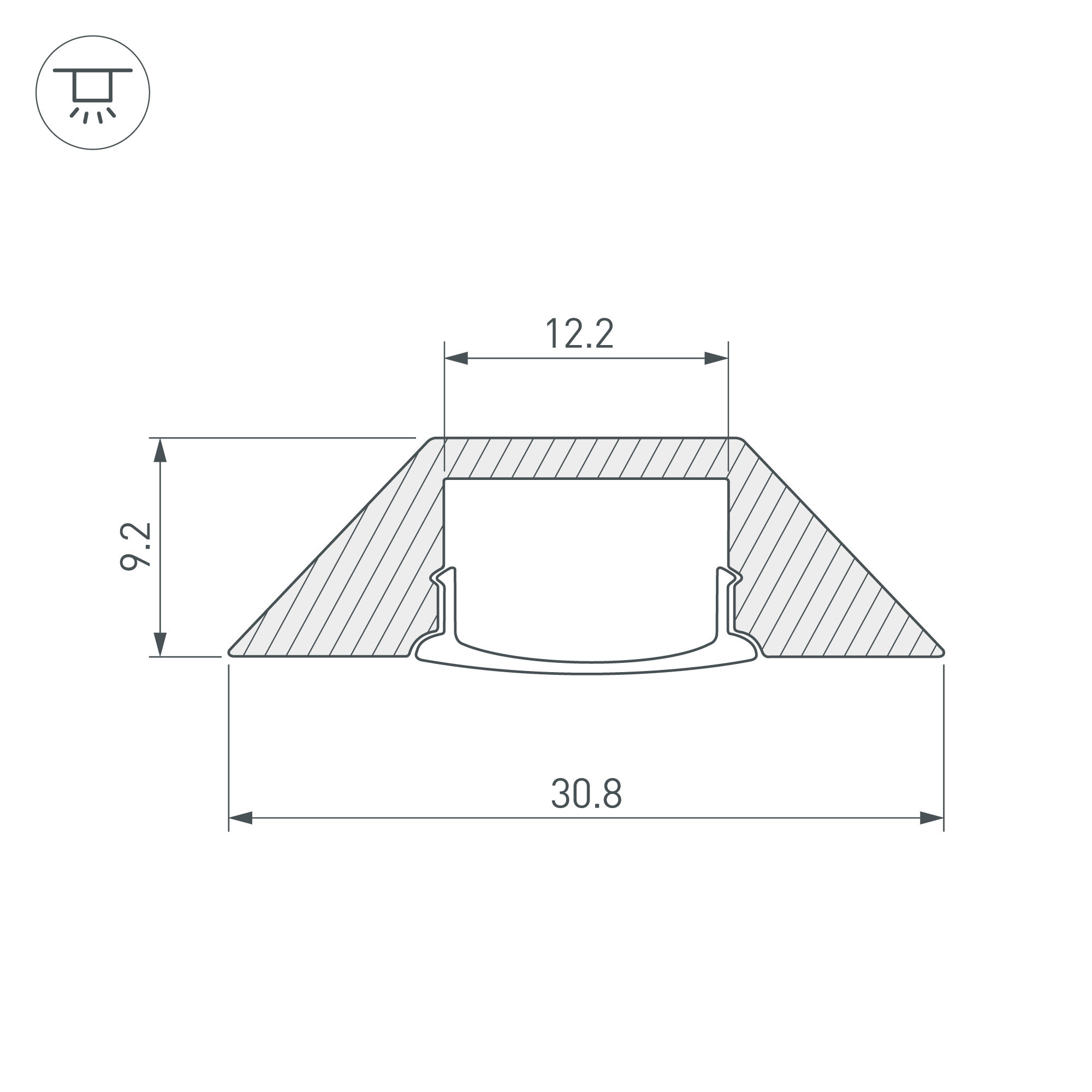 Анодированный профиль 2м ALU-CORNER (8.25х30.8мм) в комплекте с матовым экраном. Для лент и линеек шириной до 12мм.Высота 9.2 х ширина 30.8мм. Цена за 2м, включая экран.