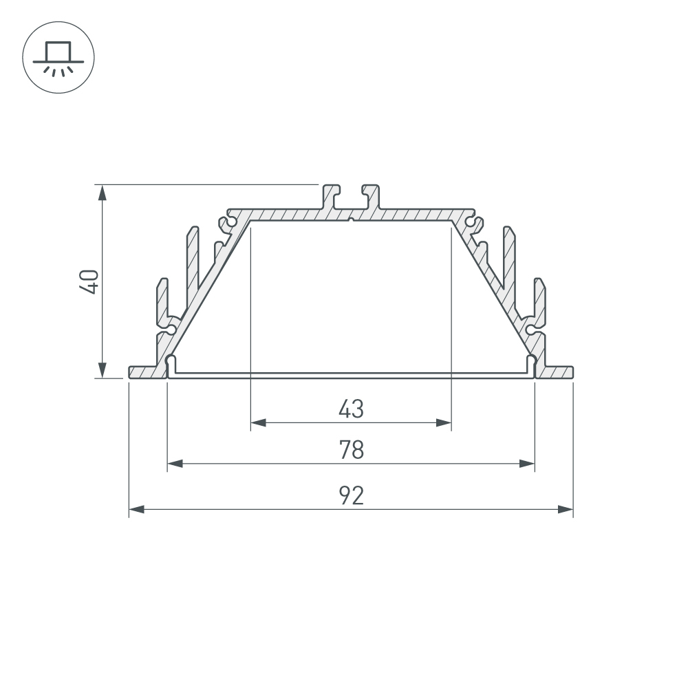 Алюминиевый встраиваемый профиль POWER. Длина 2м, в комплекте с матовым экраном. Для создания световых полос и светильников. Материал экрана - PC, UV-защитный. Размеры 92х40 мм, размер для встройки - 80мм