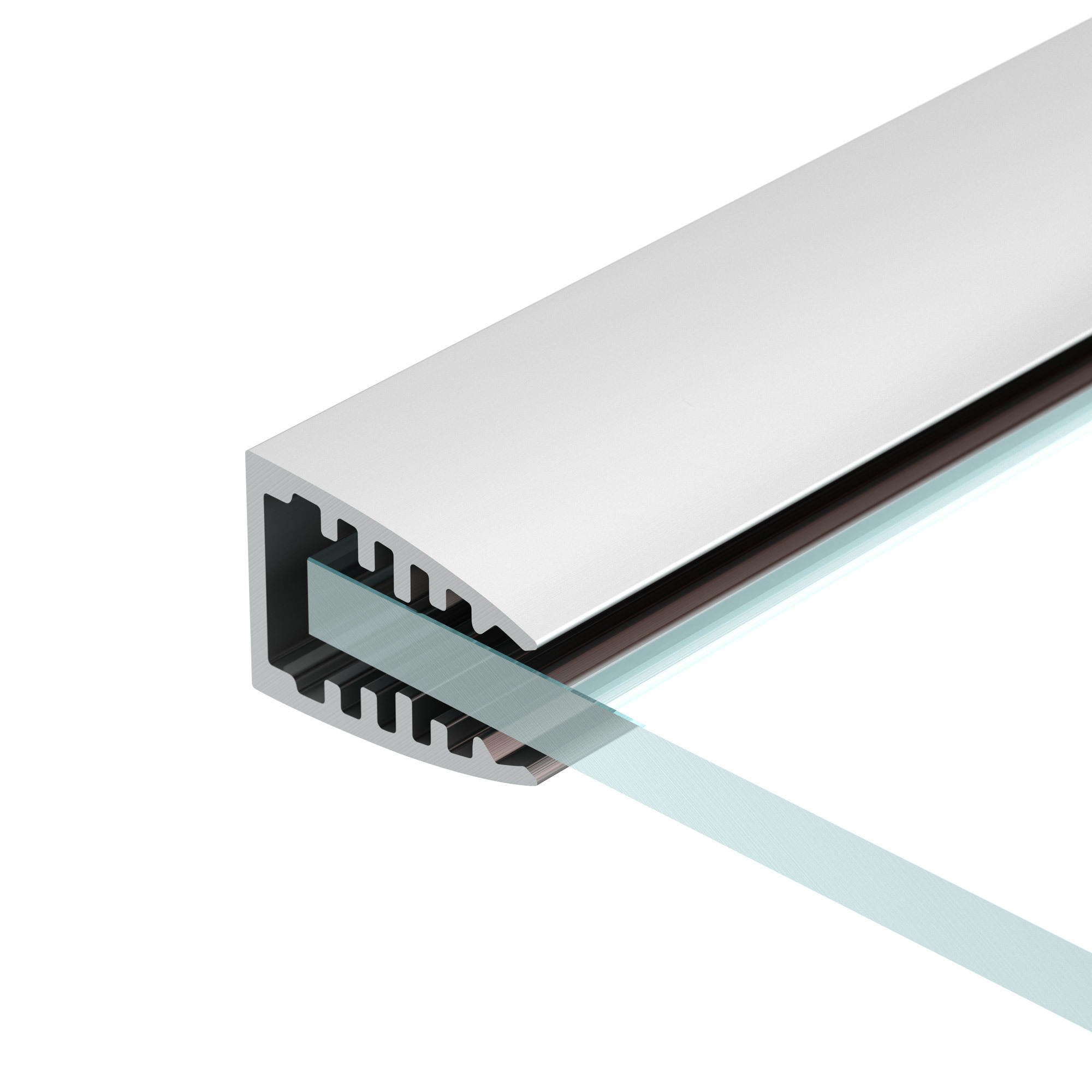 Алюминиевый профиль (держатель стекла) для освещения краев стекла толщиной 6 мм. Подложка для ленты в комплекте. Анодированный. Подходят светодиодные ленты (при установке на подложку) шириной до 10 мм, линейки до 10 мм. Размеры 2000x12.5x18 мм. С экранами не используется.