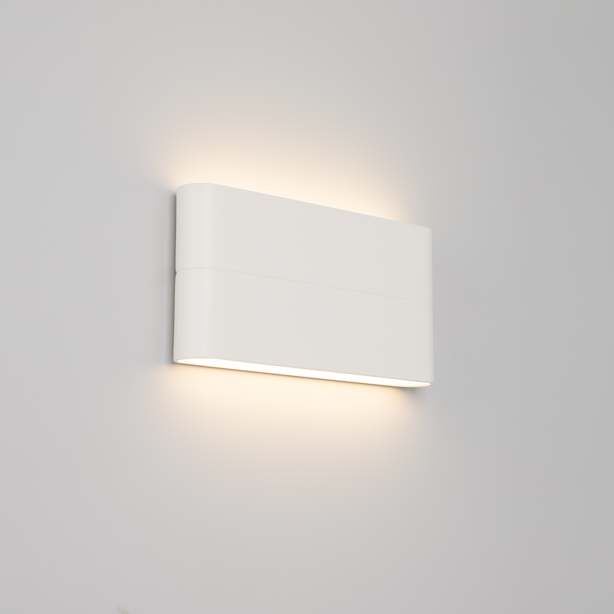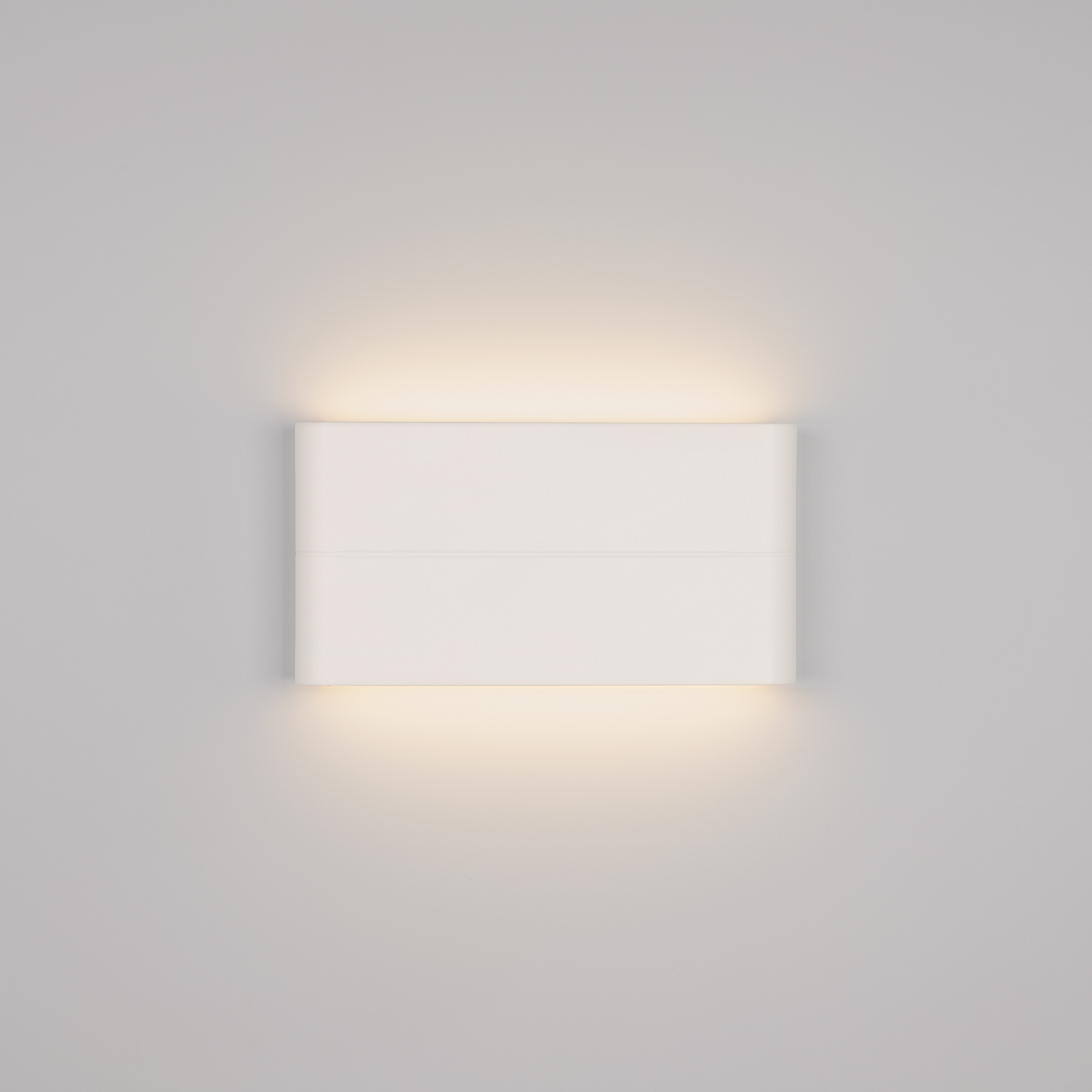 Накладной настенный светильник 2x6Вт, белый алюминиевый корпус, матовый рассеиватель из поликарбоната. Цвет ТЕПЛЫЙ БЕЛЫЙ 2990K, св.поток 950лм, CRI(Ra)>80, угол 120°, свет вверх-вниз. Размер 170x90x28мм. IP54. Питание AC220-240V, 12Вт, встроенный драйвер.