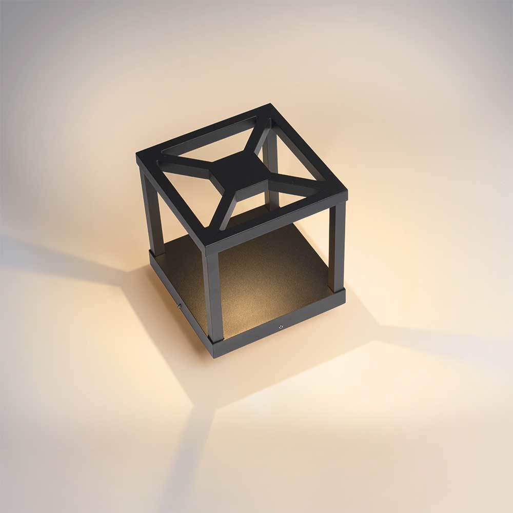 230мм уличный светодиодный светильник для дорожек, угол освещения 125°, свет на 4 стороны. Цвет ТЕПЛЫЙ БЕЛЫЙ 3000К, светодиод 12Вт CREE (653 лм). Влагозащищенный корпус IP54 - черный алюминий, экран закаленное стекло. Питание 100-240В, мощность 12 Вт. Размеры ВхШхГ 230х180х180мм.