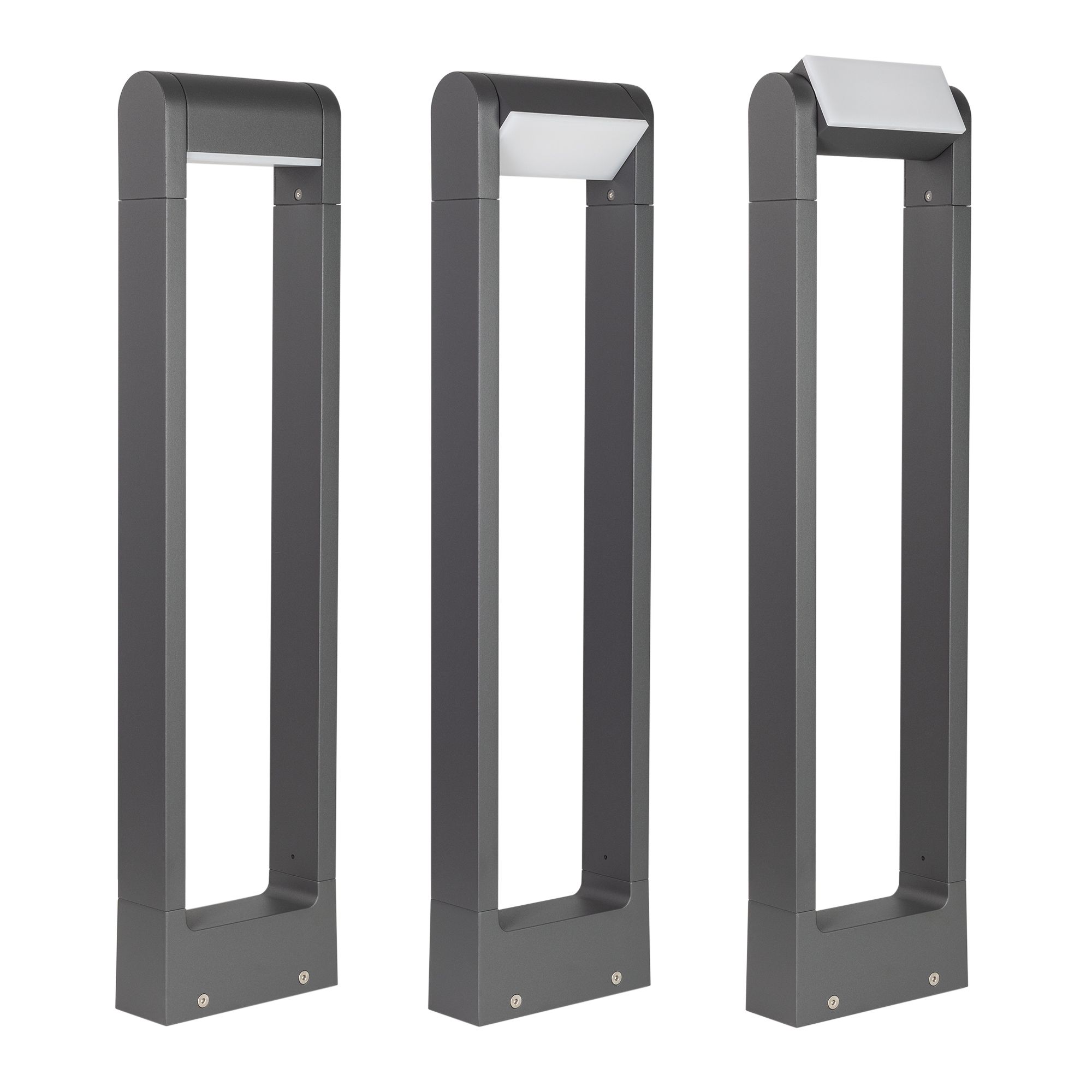 650мм уличный светодиодный светильник для дорожек, изменяемый угол освещения (111 градусов), на 2 стороны. Цвет ТЕПЛЫЙ БЕЛЫЙ 3000К, светодиоды 6Вт SMD (275 лм). Влагозащищенный корпус IP65 - темно-серый алюминий, экран ударопрочный PC. Питание 220В, мощность 6 Вт. Размеры ВхШхГ 650х160х54 мм.