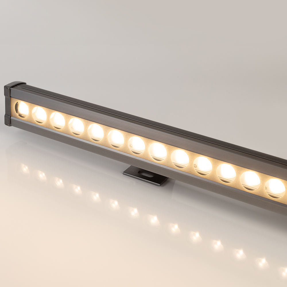 Линейный светодиодный прожектор. Мощность 36W, напряжение питания DC 220V. Светодиоды OSRAM 36 штук. Цвет светодиодов теплый белый 3000K, световой поток 3600 Lm, угол рассеивания 30°. Корпус: алюминиевый сплав и армированное стекло. Цвет корпуса серый, степень влагозащиты IP65. Габариты 1000x78x54мм.
