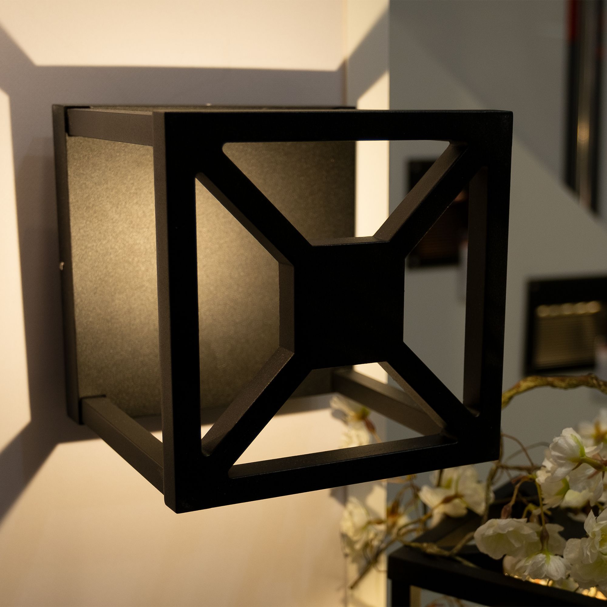 Уличный светодиодный светильник для стен, угол освещения 125°. Цвет ТЕПЛЫЙ БЕЛЫЙ 3000К, светодиод 12Вт CREE (653 лм). Влагозащищенный корпус IP54 - черный алюминий, экран закаленное стекло. Питание 100-240В, мощность 12 Вт. Размеры ВхШхГ 200х180х180мм.