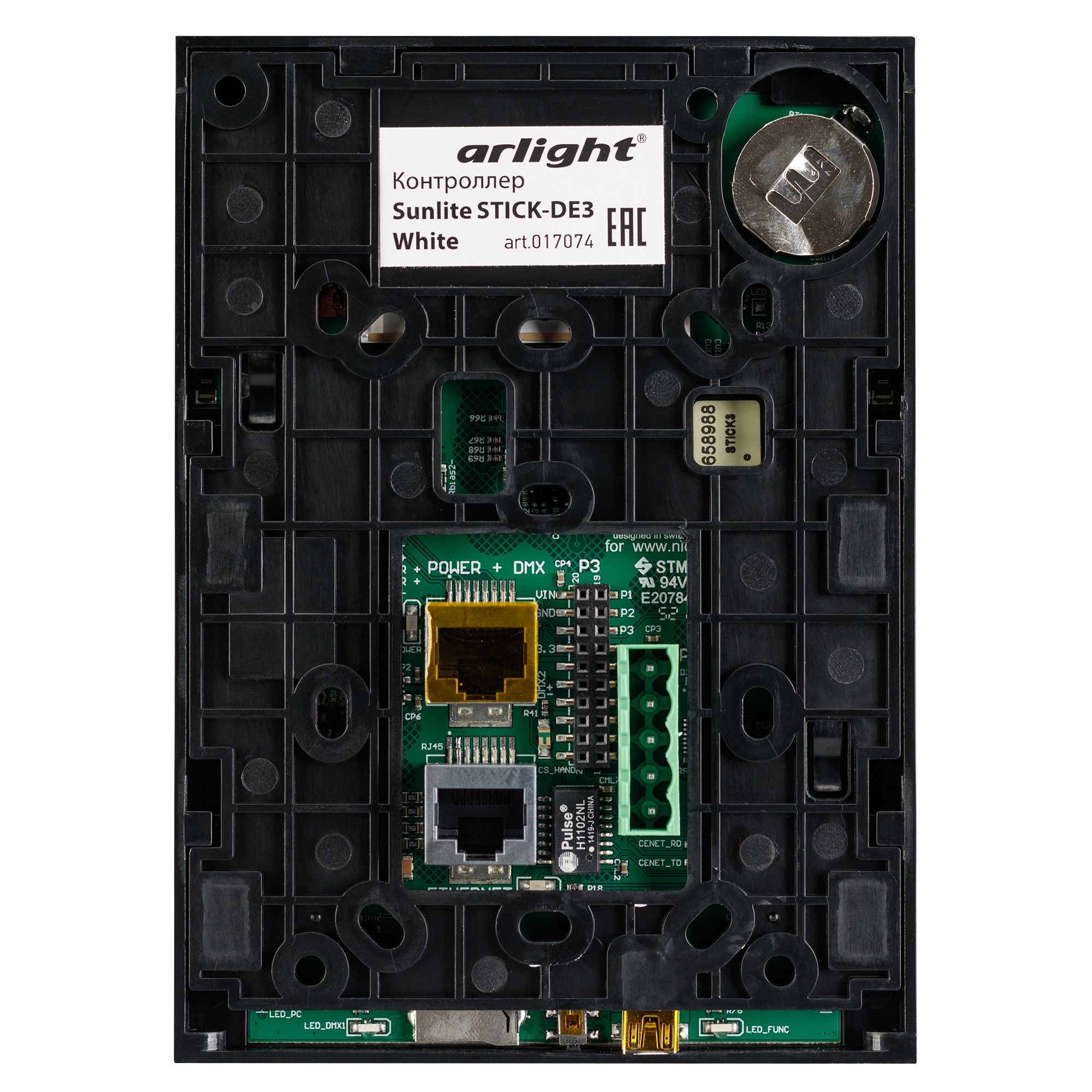 Настенный DMX контроллер Sunlite STICK-DE3, 1024 канала, USB/Ethernet, ESA+ESA2+ESA Pro software, microSD card, материал - белое стекло, Сенсорное управление, 20 кнопок, 500 сцен (программ), 10 зон, 106х146х11мм, вес 250гр. Напряжение питания 5V. Не подлежат обмену и возврату. Комплектация: контроллер, блок питания, карта памяти, кабель USB, паспорт изделия.
