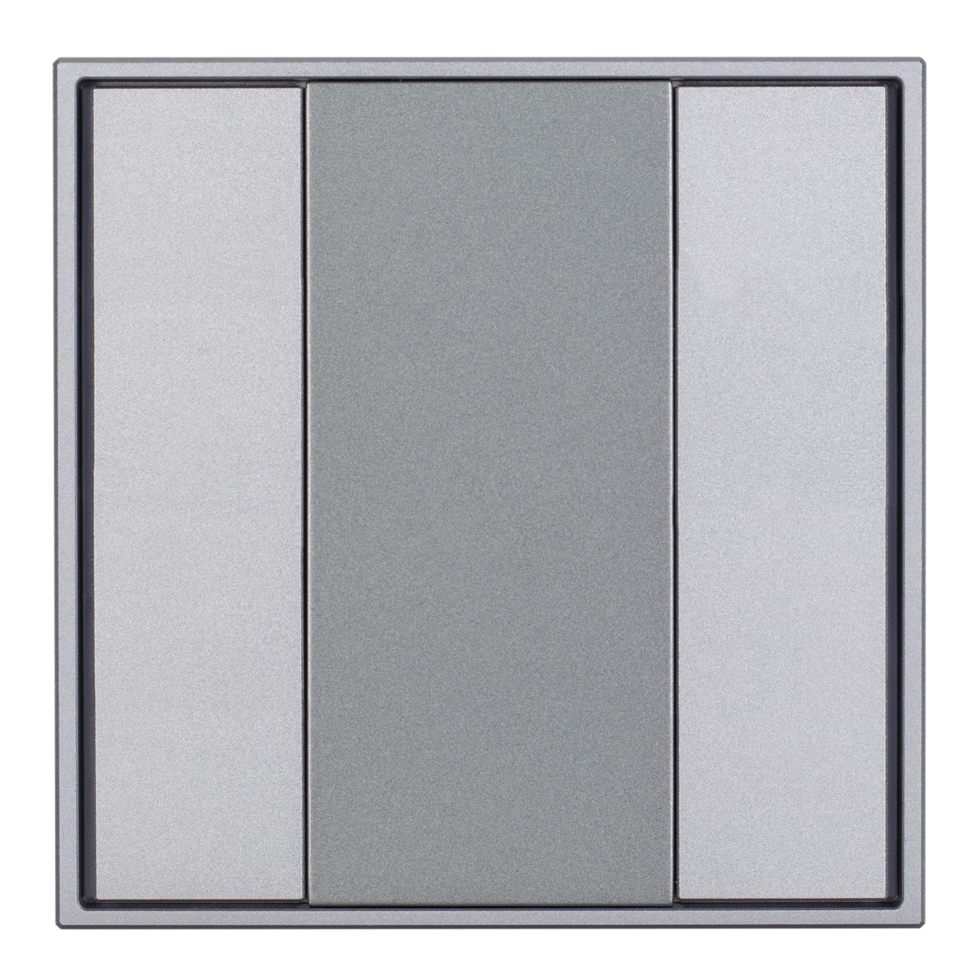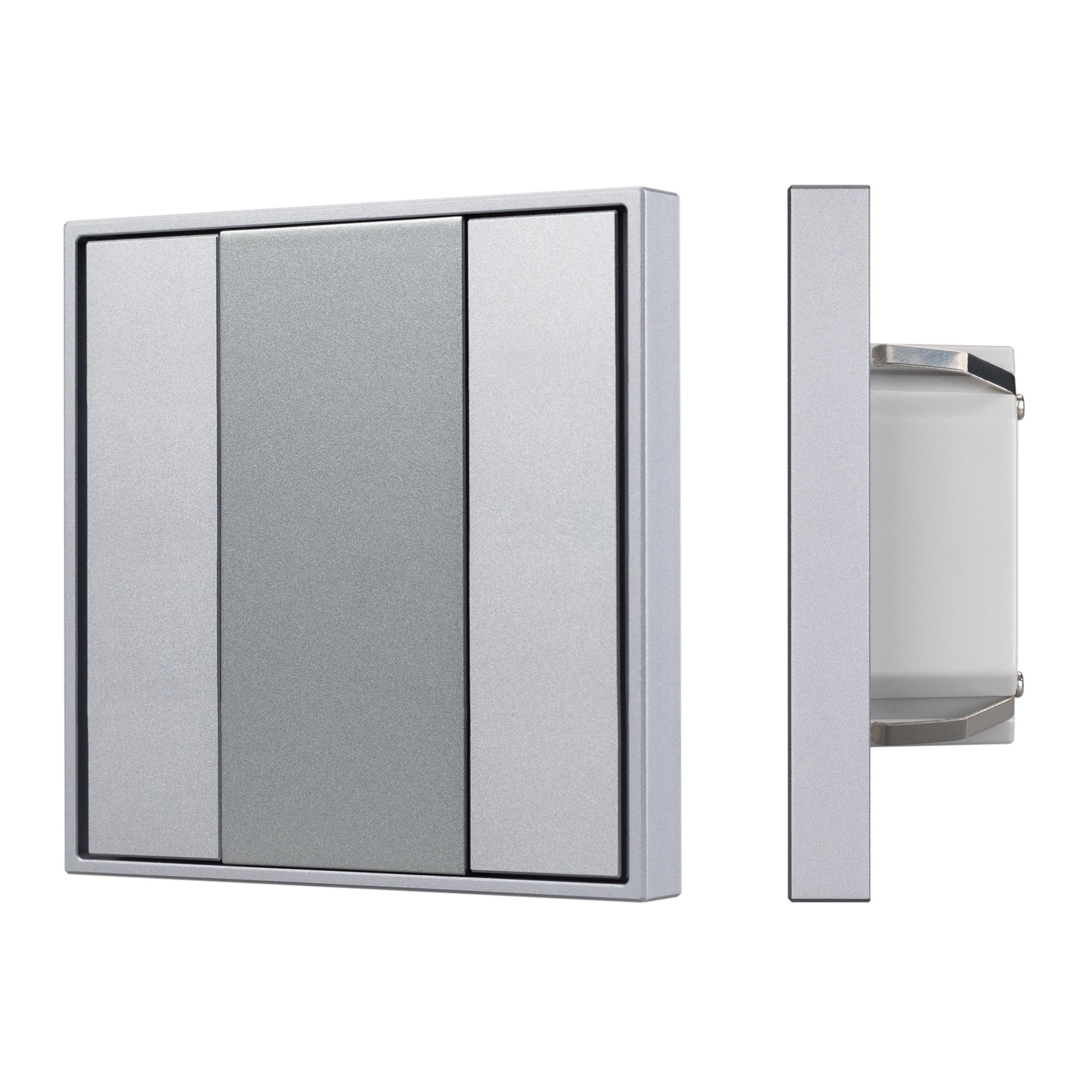 Универсальная встраиваемая настенная панель стандарта KNX. 2 кнопки, цвет корпуса и кнопок серый. Питание от шины KNX DC 21-30V. Безрамочный дизайн. 80х80х9