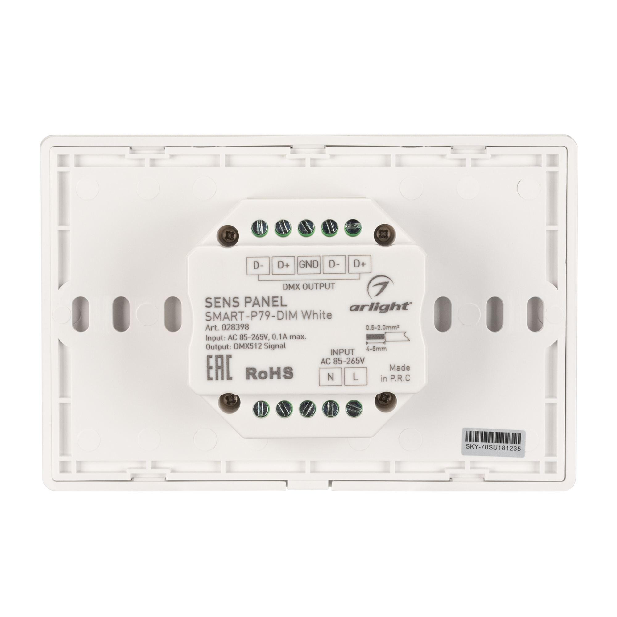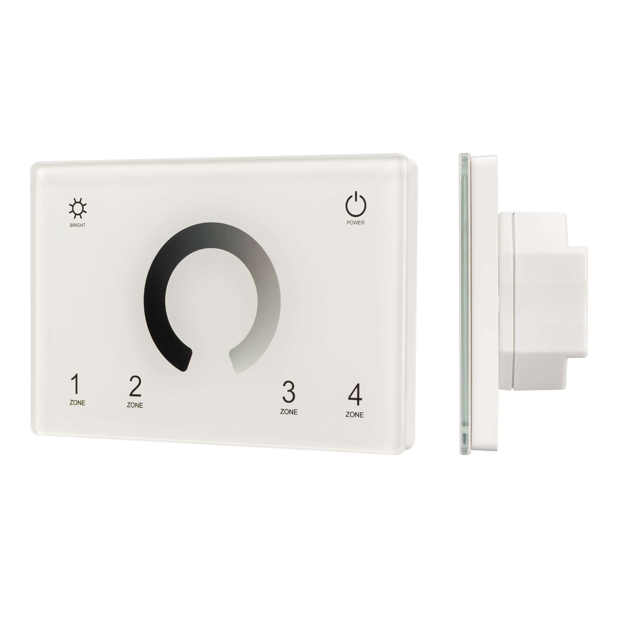Встраиваемая сенсорная панель 2.4 ГГц, цвет белый. Итальянский стандарт. Материал - стекло. Для управления одноцветными источниками света (ШИМ), 4 зоны управления. Функция управления DMX512 устройствами. Питание/рабочее напряжение AC 85-265V. Габариты 120х80х37 мм, устанавливается в стандартный подрозетник. Панель совместима с диммерами серии SMART.