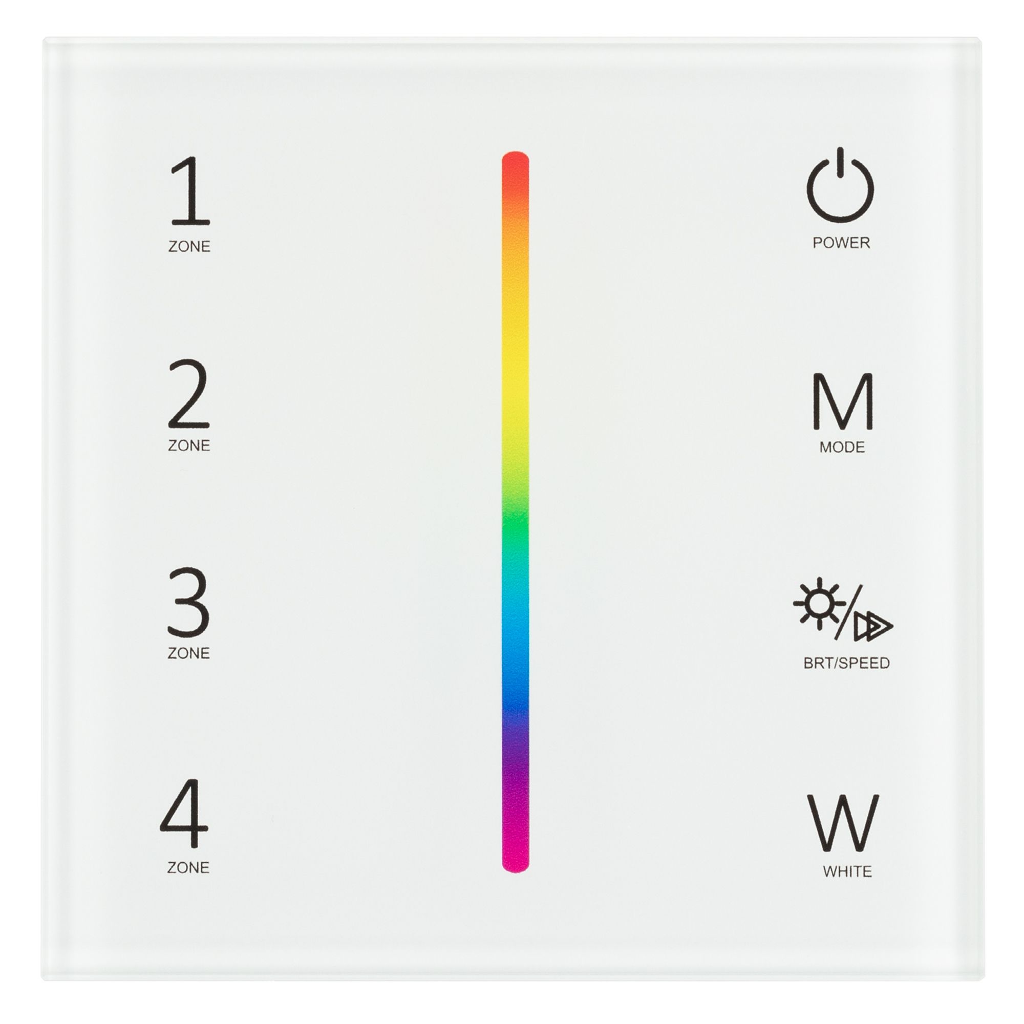 Встраиваемая сенсорная стеклянная панель 2.4 ГГц, цвет белый. Для управления RGBW источниками света с помощью сенсорной полосы. Питание/рабочее напряжение AC 85-265V, 4 зоны управления. Функция управления DMX512 устройствами. Габариты 86х86х36 мм. Панель совместима с контроллерами и пультами серии SMART.