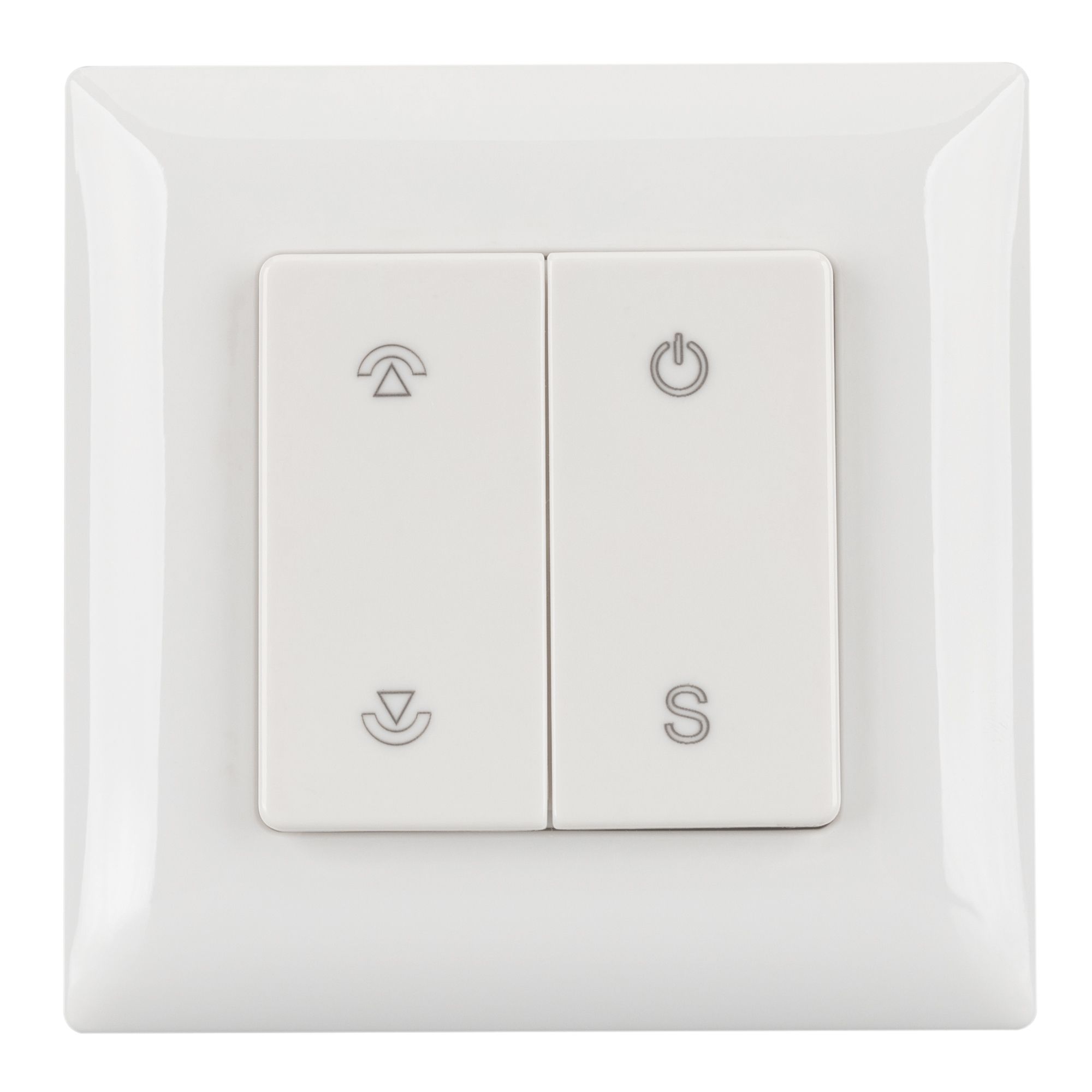 Накладная кнопочная панель 2.4 ГГц, цвет белый. Материал - пластик. Для управления одноцветными источниками света, 1 зона управления. Питание/рабочее напряжение 3VDC от батарейки CR2032. Габариты 86х86х14 мм. Совместима с диммерами SMART.