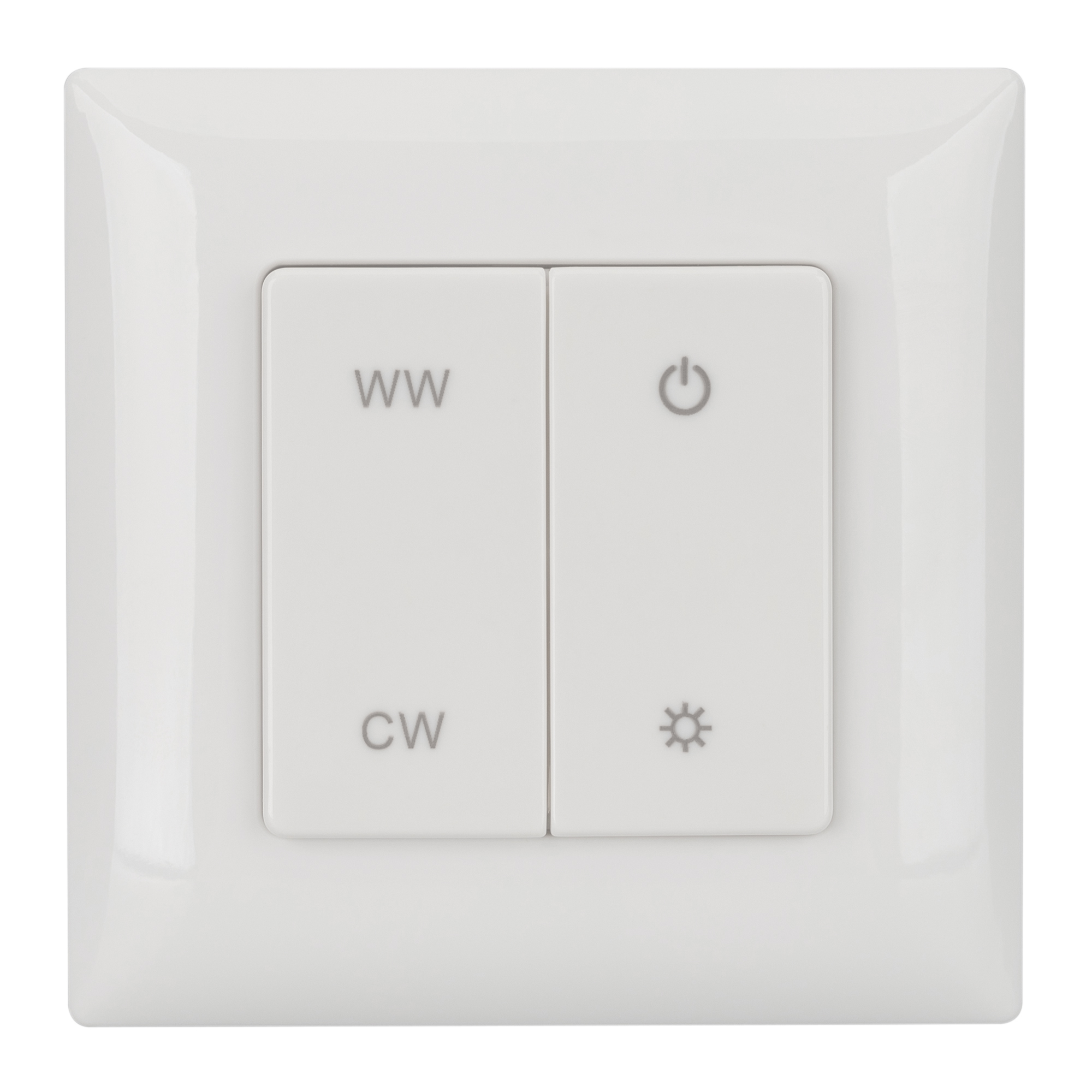 Накладная кнопочная панель 2.4 ГГц, цвет белый. Материал - пластик. Для управления мультибелыми (MIX) источниками света (ШИМ), 1 зона управления. Питание/рабочее напряжение 3VDC от батарейки CR2032. Габариты 86х86х14 мм. Совместима с контроллерами SMART.