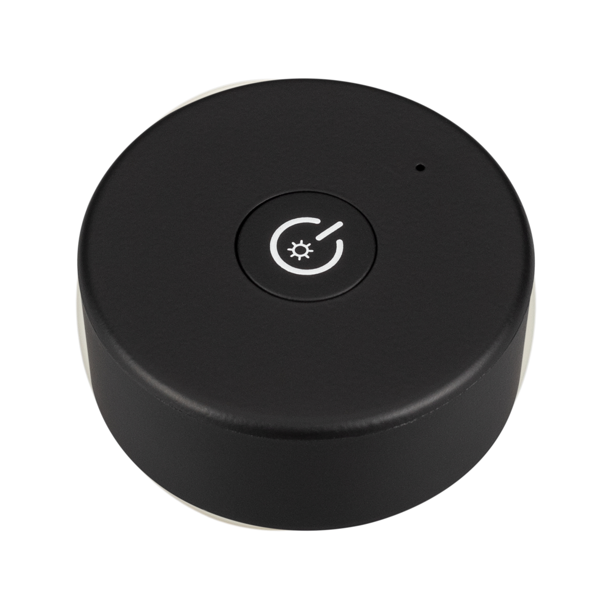 Накладная кнопочная миниатюрная панель 2.4 ГГц, цвет черный. Материал - пластик. Для управления одноцветными источниками света (ШИМ), 1 зона управления. Питание/рабочее напряжение 3V от батареи CR2032. Габариты 43х43х17 мм. Панель совместима с диммерами серии SMART.
