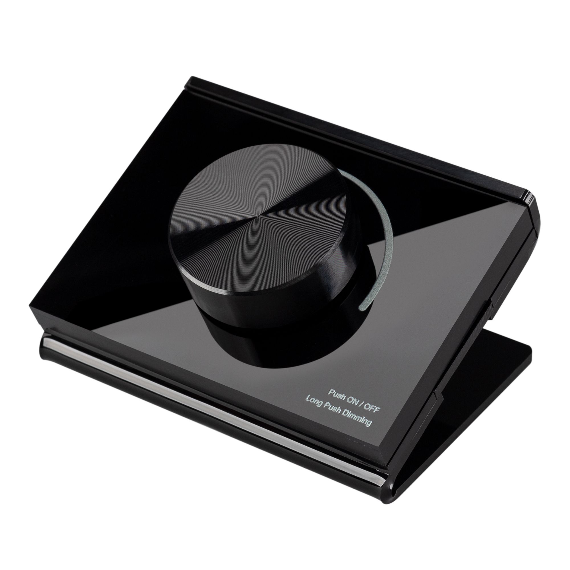 Настольная роторная стеклянная панель 2.4 ГГц, цвет черный. Для управления одноцветными источниками света (ШИМ). Управление яркостью с помощью роторного регулятора. Питание/рабочее напряжение 3VDC от батарейки CR2032. Габариты 91х72х52 мм. Панель совместима с диммерами и пультами серии SMART.
