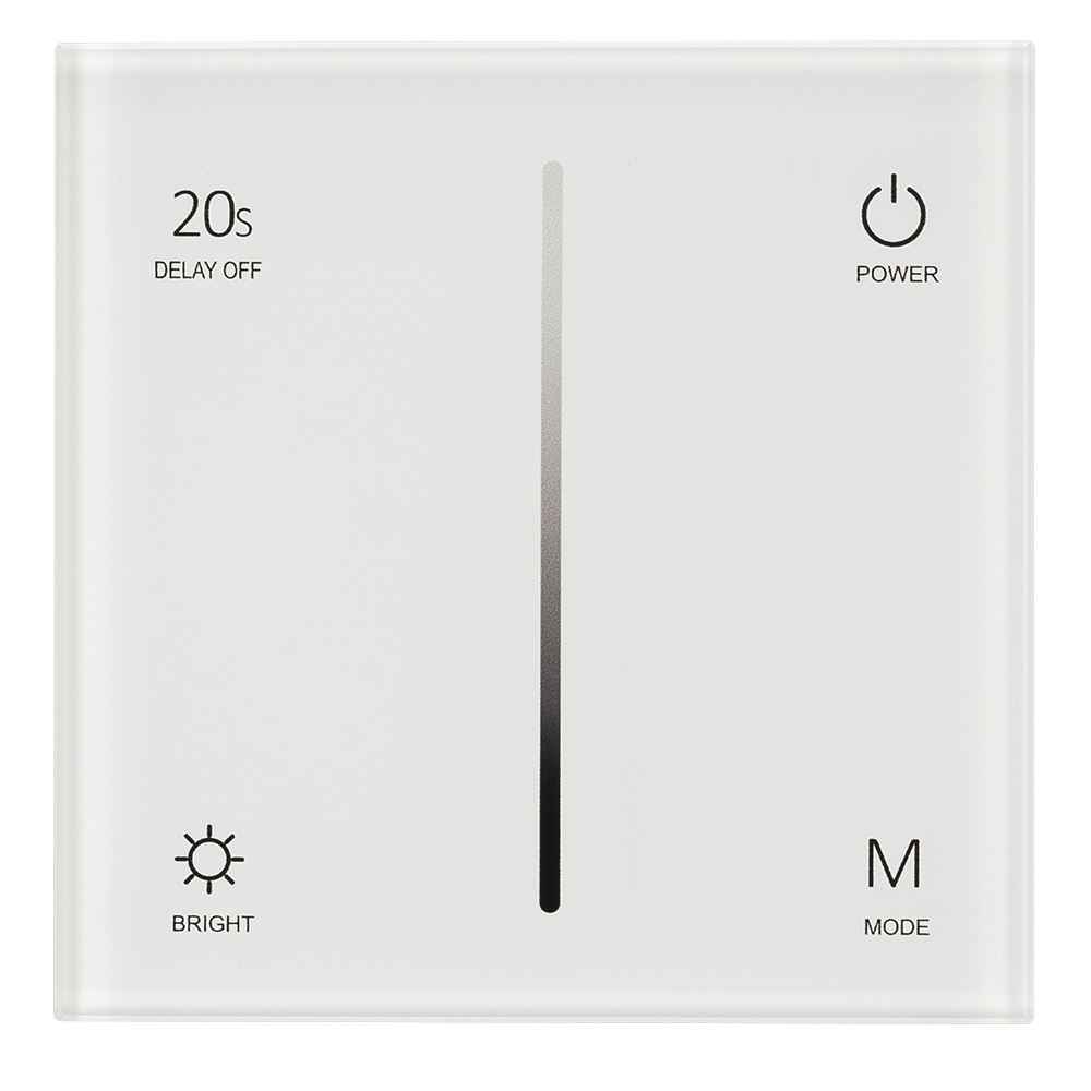 Панель рекомендована для применения в качестве одноканального диммера с управлением по TRIAC, наиболее распространенный при регулировки яркости галогенных ламп и ламп накаливания. Также работает с такими устройствами, как диммируемые блоки питания для светодиодных лент и диммируемые драйвера для светодиодных светильников. Удобное и интуитивно понятное сенсорное управление.