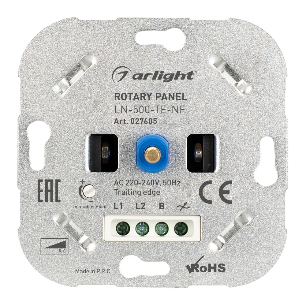 Встраиваемая роторная панель. Для управления одноцветными источниками света (TRIAC). Управление яркостью с помощью роторного вращателя. Работает в режиме Trailing Edge, диммирование по заднему фронту. Не требует подключения N провода. Возможна работа с любым источником света, поддерживающим фазное диммирование. Есть регулировка ограничения минимального уровня яркости. Питание/рабочее напряжение 220-240VAC. Максимальная резистивная нагрузка 500W, минимальная- 5W. Габариты 70х70х42 мм., Декоративная накладка в комплект не входит. Панель совместима с проходными выключателями. Механизм совместим с большинством европейских производителей электроустановочных изделий.