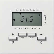 Регулирование температуры в помещении с помощью внутреннего датчика температуры и/или внешнего термодатчика в качестве термостата помещения, регулятора температуры пола или ограничителя температуры пола.