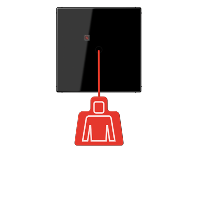 Легко доступный в ванной комнате или туалете шнурок от кнопки вызова. Чтобы быть более доступным для людей, нуждающимся в помощи, она может быть также расположена на потолке в середине комнаты. Красная лампочка на кнопке вызова сигнализирует, что сигнал успешно передан.