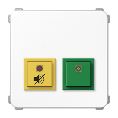 Сервисное устройство, сервисный терминал и кнопка вызова заказываются отдельно. Сервисное устройство может устанавливаться, например, в палате или приемной. Зелёная кнопка означает присутствие, нажатие жёлтой кнопки на 20 секунд активирует акустический сигнал сигнализатора.