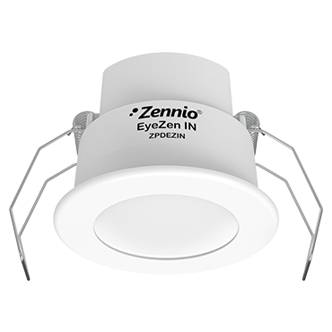Для подключения к универсальным входам ZENNIO предназначен датчик движения KNX EyeZen IN. Он также имеет датчик освещенности, угол обзора 360° и радиус покрытия до 6м. Монтаж осуществляется в фальш-потолок, при этом необходимо иметь монтажное отверстие диаметром 51мм. Размеры датчика - 48x41 мм, степень защиты от пыли и влаги - IP20, цвет исполнения - белый. Доступность данного датчика следует уточнять.