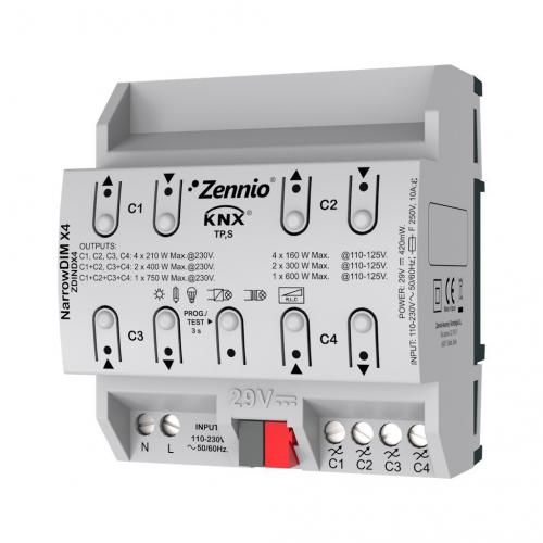 Для DIN-рейки (4,5 TE) предназначен универсальный диммер (RLC, LED, CFL*) с возможностью диммирования 4x210W, 2x400W, 1x750W.