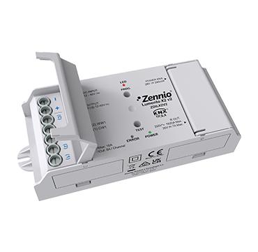Диммер для светодиодов с 2 каналами, разработанный для светодиодной технологии, обеспечивает стабилизацию напряжения с помощью широтно-импульсной модуляции (ШИМ) с частотой 1000 Гц. Каналы диммирования могут быть сконфигурированы как независимые каналы или как каналы с регулируемой цветовой температурой (TW-каналы). Дополнительно предусмотрен релейный выход (16 А) для управления питанием светодиодов или для автономного использования, а также кнопка ручного тестирования для проверки работы каналов. Среди его обширного функционала выделяются регулировка цветовой температуры и управление HCL (Human Centric Lighting). Совместим с KNX Secure. Максимальный ток на канал: 8 А. Максимальный ток на устройство: 16 А. Питание: 12-40 В постоянного тока.
