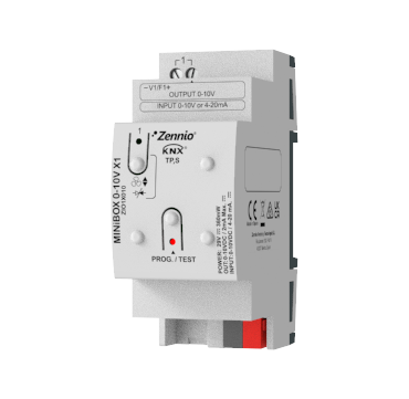 Данный привод предназначен для монтажа на DIN-рейку шириной 2 DIN и оснащен 1 каналом. Он может быть настроен на работу в качестве выхода 0-10 В, входа 0-10 В или входа 4-20 мА. Кроме того, комплектация включает модуль фанкойла, который позволяет управлять клапаном или вентилятором с помощью сигнала 0-10 В, а остальные объекты - внешним устройством. Ручное управление осуществляется с помощью кнопки. Состояние канала отображается светодиодным индикатором. Также данный привод имеет 10 логических функций и 1 термостат.