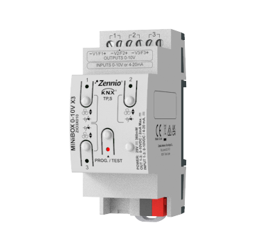 Данный привод предназначен для монтажа на DIN-рейку шириной 2 DIN и имеет 3 канала, которые можно настроить как выходы 0-10 В, входы 0-10 В или входы 4-20 мА. Каждый канал может быть сконфигурирован индивидуально или совместно для управления 2-трубными или 4-трубными фанкойлами, где вентилятор и клапаны управляются сигналами 0-10 В. Для управления приводом доступно ручное управление с помощью кнопок, а состояние каждого канала отображается светодиодным индикатором. Кроме того, привод включает в себя 10 логических функций и 3 термостата.