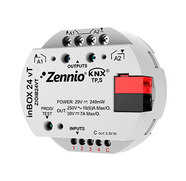 Данный привод предназначен для скрытого монтажа и имеет 2 выхода (16 A C-Нагрузка), которые могут быть использованы как канал затвора или отдельные выходы. Он обладает ручным управлением выходами, а также включает в себя 1 термостат, 10 независимых логических функций и функцию Master-Light. Кроме того, привод имеет 4 аналого-цифровых входа, которые могут быть настроены как двоичные входы для датчиков и кнопок, как входы датчика температуры или как входы датчика движения. В комплекте с приводом поставляются датчики температуры, датчик движения и адаптеры затвора переменного/постоянного тока.
