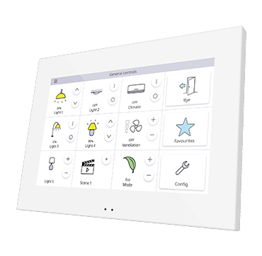 Z70 - это емкостная сенсорная панель с дисплеем 7 дюймов, которая имеет минималистичный дизайн и позволяет полностью контролировать умный дом. Встроенный датчик приближения автоматически включает энергосберегающую заставку на экране, когда панель не используется, а датчик освещенности регулирует яркость. Z70 также имеет встроенный датчик температуры, термостат и 4 аналогово-цифровых входа, а также USB-порт для загрузки конфигурации. Она устанавливается в стандартную двойную монтажную коробку. Дополнительные функции могут быть активированы с помощью лицензий, таких как управление со смартфона, интеграция с видеодомофоном Zennio GetFace IP, прием звонков с видеодомофона Zennio GetFace IP в мобильном приложении и голосовое управление с помощью Alexa®, Siri® или Google®. Дополнительными аксессуарами являются датчик температуры и датчик движения.