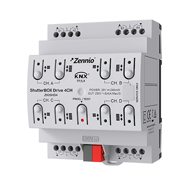 4-канальный привод для жалюзи на DIN-рейку (4 шт.), позволяющий автоматически измерять время хода за счет определения тока. Он включает 6 сигналов тревоги на канал, модуль из 20 логических функций и позволяет осуществлять ручное управление выходами с индикацией состояния светодиодами. Среди всех его функций выделяется автоматическое управление по событиям, рассчитывающее положение солнца в каждый момент времени для регулировки положения жалюзи и ламелей. Совместим с KNX Secure.